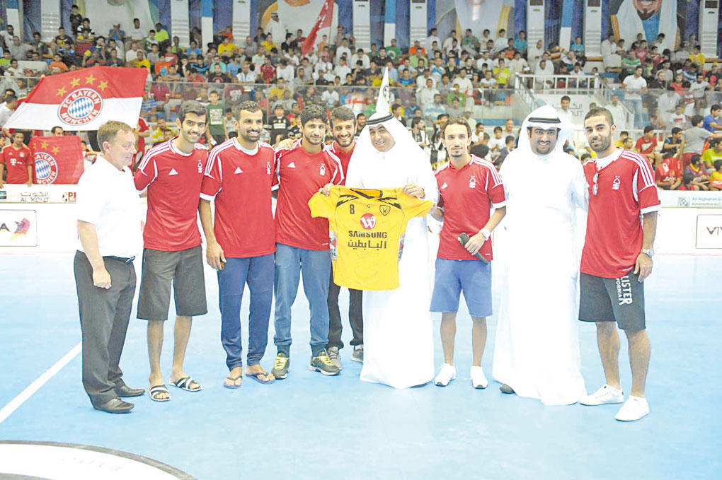 وكشر فريق المرحوم عبد الرزاق الصانع عن أنيابه في اللقاء الثاني ونجح في خطف فوز مستحق من نيسان البابطين بتسجيله 3 أهداف في الشوط الأول عن طريق سانيتا بسي ومشاري خالد ويوسف السلمان قبل أن يسجل ثامر جابر هدف الشرف لنيسان البابطين وعاد يوسف السلمان من جديد ليسجل رابع أهداف الصانع. وفي المباراة الأخيرة اكتسح سبورتس دايركت فريق وزارة الدفاع بالخمسة معلنا تأهله للدور التالي، وتناوب على تسجيل أهداف دايركت عبدالرحمن الطويل «هدفين» ريكاردينهو «ثلاثة أهداف». ذي اثليتس فوت والكابلات ينشدان الفوز اليوم يسعى النصر السعودي إلى حسم تأهله للدور الثاني عندما يلاقي ذي اثليتس فوت في أقوى مواجهات اليوم الثاني عشر بالدورة، كما يلتقي ديوانية العمر مع الخليج للكابلات والقرية التراثية مع بنك الكويت الدولي. ويدخل النصر مباراته الثانية في دور المجموعات منتشيا بفوزه المستحق على القرية التراثية في المباراة الأولى، التي شهدت تألق الثنائي الإيطالي فورتي وفابريشيو إلى جانب المواهب المحلية في النصر المتمثلة في أحمد الهزازي وعبدالله العمودي وعبدالرحمن الملا. في المقابل يأمل ذي اثليتس فوت الخروج بنتيجة ايجابية اليوم لإنعاش آماله في المنافسة على التأهل بعد التعادل في مباراته الأولى مع بنك الكويت الدولي، الذي سيخوض مباراة مصيرية مع التراثية. بدوره سيكون فريق ديوانية العمر على أعتاب التأهل إلى الدور المقبل في حال اجتياز عقبة الخليج للكابلات، وكان العمر قد استهل مشواره في الدورة بالفوز على بلاغة، بينما حقق الكابلات انتصارا ثمينا ومستحقا على النصر الإماراتي. الشامية يطيح بمونيستر من البراعم نجح فريق سوكا ستار في ظهوره الأول بدورة البراعم في يومها العاشر في خطف الفوز من فريق المرحوم جابر محمد بهدف من دون رد، بينما تغلب فريق الشامية على مونيستر بثلاثة أهداف لهدف كما تمكن ريال مدريد من بلوغ دور الاربعة للمجموعة الثانية بتخطيه عقبه ديوانية صباح السالم بهدف نظيف. وحفلت مواجهات اليوم العاشر من دورة البراعم بالندية والإثارة واستمتع جمهور الدورة بمهارات لاعبي الفرق المشاركة الذين تباروا في إظهار قدراتهم لمساعده فرقهم في بلوغ الدور التالي. من ناحية أخرى، تتواصل اليوم منافسات الدورة بإقامة ثلاث مباريات ضمن المجموعة الرابعة حيث تلتقي أكاديمية نادي الزمالك المصري مع ديوانية طلال العنزي فيما يواجه فريق سنيار نظيره أكاديمية سوبر كيكر وفي المواجهة الأخيرة يلاقي دورتموند فريق الزماي. احتفالية خاصة في أجواء مثالية غلب عليها الطابع الأوروبي في التشجيع، أقامت اللجنة المنظمة لدورة الروضان لكرة القدم احتفالية خاصة ضمن فعاليات اليوم العاشر لنادي نوتنغهام فرست الإنكليزي، بحضور مالكه فواز الحساوي ومدربه الاسكتلندي بيلي ديفيز، والحارس خالد الرشيدي والمحترف الجزائري قديورة إلى جانب نجوم القادسية. وتزامنت احتفالية نوتنغهام فرست مع زيارة وزير التجارة والصناعة انس الصالح لدورة الروضان، ونائب المدير العام للهيئة العامة للشباب والرياضة د. حمود فليطح. وبدأت احتفالية نوتنغهام بمصافحة الحساوي وديفيز ورئيس اللجنة المنظمة للاعبين خالد الروضان، وسط هتافات وأناشيد من الجماهير احتفالا بالحساوي ووفد نوتنغهام، وزينت أعلام النادي الإنكليزي مدرجات الروضان وكذلك فانلات النادي الذي يلعب حاليا في دوري الدرجة الأولى بإنكلترا. وقام الروضان بتكريم الحساوي وديفيز داخل الملعب، تعبيرا عن تقدير دورة الروضان للتجربة الرائدة التي أقدم عليها الحساوي بشراء النادي الإنكليزي ورفع اسم وعلم الكويت عاليا داخل النادي العريق، حامل لقب دوري الأبطال مرتين، وفي كل الملاعب الإنكليزية. الحساوي: أعجز عن وصف «الروضان» من جانبه، أكد مالك نادي نوتنغهام فرست الإنكليزي فواز الحساوي سعادته بالتواجد في دورة الروضان المميزة التي تقدم كل عام ما هو جديد، مضيفا: «يعجز اللسان عن وصف الدورة»، متمنيا لها المزيد من التطور والتقدم والر