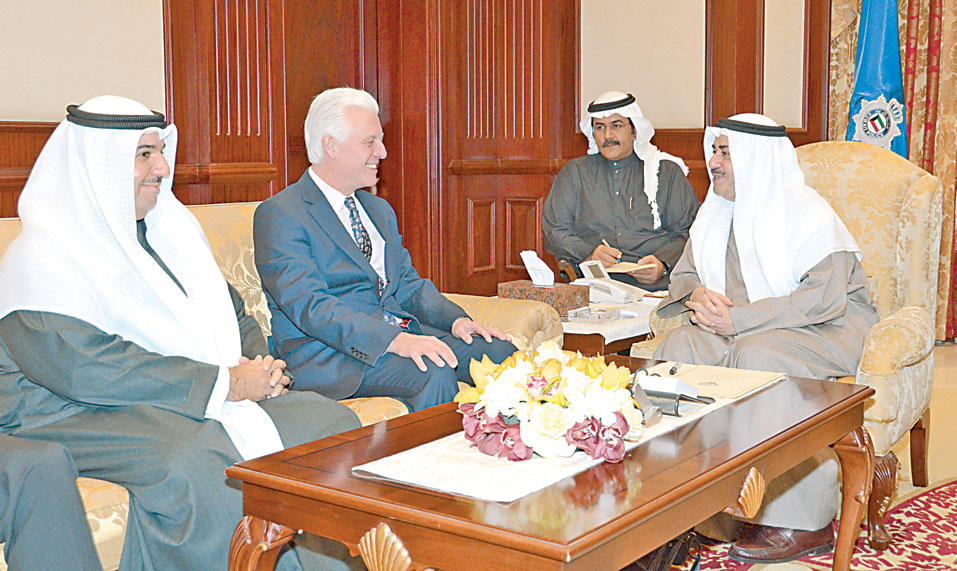 استقبل النائب الأول لرئيس مجلس الوزراء وزير الداخلية الشيخ احمد الحمود بمكتبه امس وكيل وزارة الداخلية المساعد لشؤون الأمن الجنائي اللواء عبدالحميد العوضي وبرفقته مدير إدارة البحث الجنائي والرخص العقيد عبدالرحمن الجزاف وضابط إدارة البحث الجنائي بالإدارة العامة للمباحث الجنائية النقيب محمد الوهيب الذي تعرض للاعتداء وغيره من رجال الأمن المكلفين بالتعامل مع الأحداث من قبل بعض المشاركين فى مسيرة منطقة صباح الناصر.واستمع الحمود لتقرير شامل عما تعرض له الوهيب من اعتداء سافر من قبل بعض المتجمهرين الذين تعمدوا الاحتكاك برجال الأمن وأتلفوا العديد من المركبات والمعدات الأمنية.
