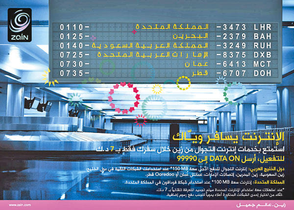 وبينت انها اطلقت عرضا خاصا لتجوال الإنترنت في المملكة المتحدة، الذي يتيح لعملائها البقاء على تواصل مع عائلاتهم وأصدقائهم وشركائهم في العمل أثناء تجوالهم في هذا البلد بأسعار تنافسية مقارنة بأسعار تجوال الإنترنت المرتفعة. وتوفر هذه الخدمة الإنترنت بسعة 100 ميغابايت لعملائها المتواجدين في المملكة المتحدة، بقيمة 7 دنانير فقط، وما على العميل إلا إرسال رسالة قصيرة بالرمز "DATA ON" إلى 99990، والاستمتاع بالتعرفة الجديدة عن طريق اختيار شبكة "Vodafone UK" في المملكة المتحدة.وأضافت "زين" أنها طرحت عرضا خاصا لعملائها من أصحاب الدفع الآجل المسافرين إلى دول مجلس التعاون للتمتع بخدمات الإنترنت الجوال بأفضل تسعيرة في المنطقة بقيمة 7 دنانير فقط لسعة 150 ميغابايت، وما على العميل الا اختيار أي من الشبكات التالية: زين في البحرين والسعودية، أو شبكة اتصالات في الإمارات، أو "عمانتل" في عمان، أو شبكة أورويدو في قطر.وأكدت الشركة أن اطلاقها لتلك العروض رسخت مساعيها لتقديم خدمات ذات قيمة مضافة عالية الجودة بأسعار تنافسية، مشيرة إلى أنها تسعى لتحقيق رؤيتها المتمثلة في التركيز على خدمة عملائها، وتلبية احتياجاتهم لمواكبة كل ما هو جديد في عالم الاتصالات المتنقلة وفي ظل ثورة التكنولوجيا. وللاطلاع على آخر المستجدات والأخبار والعروض التي تطرحها الشركة لعملائها الكرام يمكنكم زيارة موقع الشركة الإلكتروني www.kw.zain.com، أو الاتصال بمركز خدمة العملاء على رقم 107، أو زيارة أي من فروع الشركة في أكثر من 75 منطقة المنتشرة في جميع مناطق الكويت، أو زيارة قنوات التواصل الاجتماعي الرسمية للشركة.