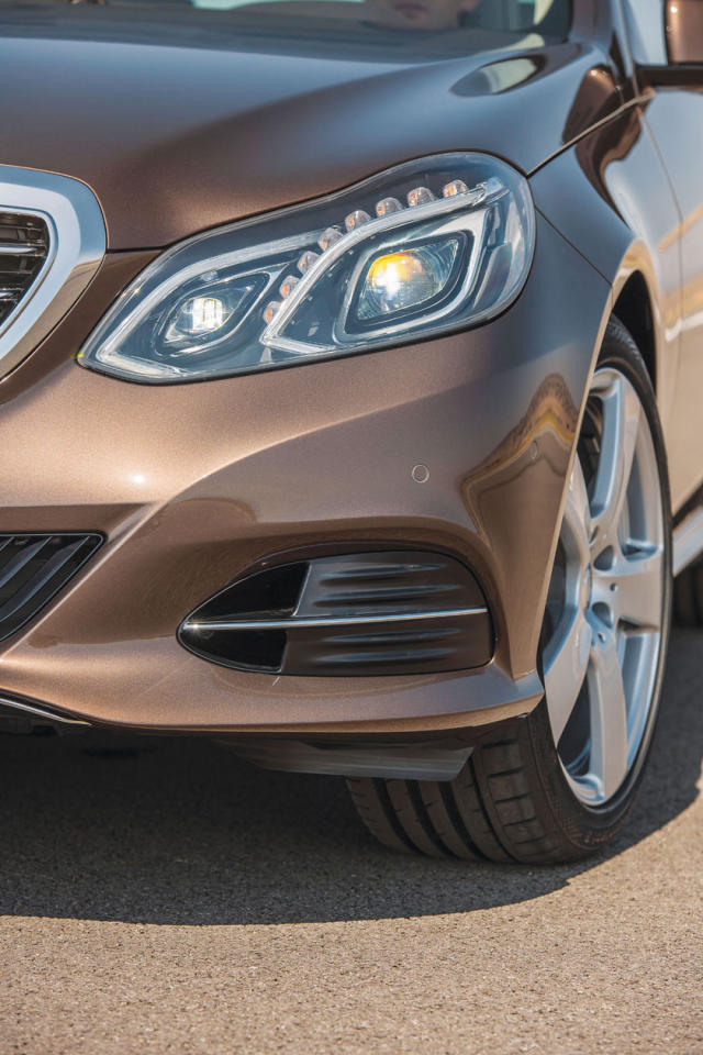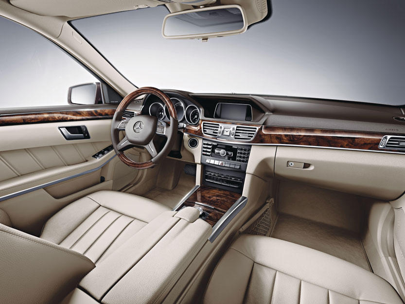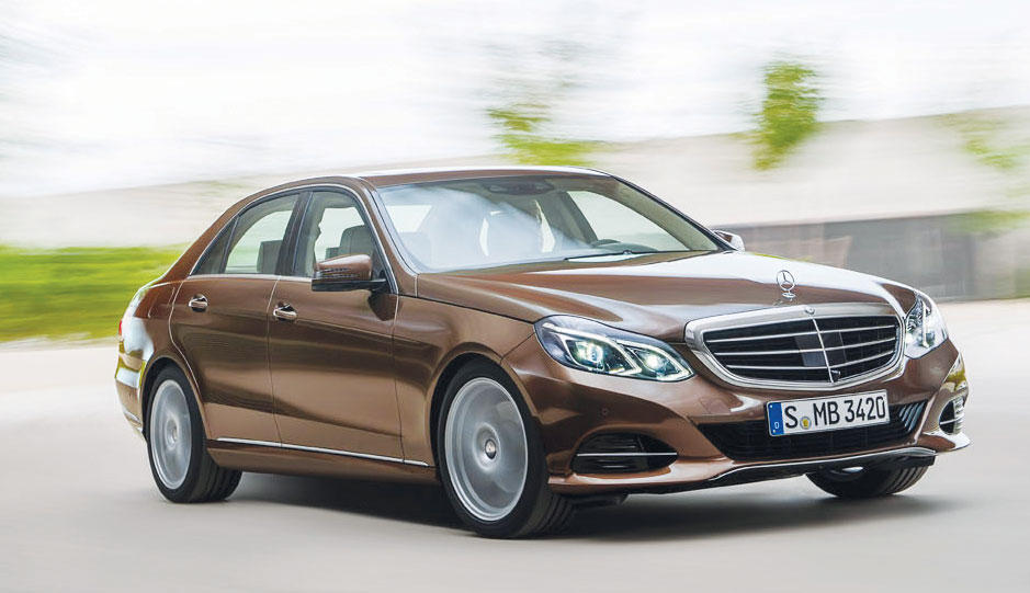 استهلاك الوقودومن التطورات الجديدة في المحرك ذي السلندرات الأربعة وجود أول موازن ديناميكي يتمتع بمحامل يمكن استخدامها في محركات الوقود وفي مضخة الماء التبادلية.تتوفر الفئة E بمجموعة واسعة ومميزة من محركات الوقود القوية ذات الكفاءة العالية، وجميعها مزودة بنظام التشغيل ECO عالي الكفاءة.كما تُستخدم في المحرك للمرة الأولى أول عملية للحرق الطبقي مدمجة مع شحن الغاز في العادم وإعادة تدوير الغاز في العادم ذي الضغط الخارجي المرتفع، ونتيجة لذلك تحقق الفئة E استهلاكاً مثالياً للوقود يبلغ 5.8 لترات فقط لكل 100 كيلومتر.تجمع كل محركات الوقود BlueDIRECT في الفئة E بين التجاوب العفوي والقوة الهائلة التي تتجلى من خلال أعلى مستويات الكفاءة وأفضل أداء في فئتها من حيث تقليل الانبعاثات.تجنب الحوادثتشتمل الفئة E للمرّة الاولى على انظمة تساعد السائقين على تجنب الحوادث مع المشاة أو المركبات الأخرى مثل المساعد الفعال للبقاء على المسار (Active Lane Keeping Assist) والذي يساعد في منع حوادث الاصطدام بالسيارات القادمة من الاتجاه المعاكس، هذا بالإضافة إلى المصابيح الكاشفة التي لا تبهر أعين السائقين الآخرين وتتيح الرؤية بأوضح المستويات، وبهذا تؤكد مرسيدس – بنز ريادتها في مجال السلامة، بينما تخطو من خلال الفئة E خطوات عملاقة فيما يتعلق بالكفاءة والبيئة معاً الذي يظهر فعلياً من خلال محركات الوقود BlueDIRECT الجبارة ذات الاسطوانات الأربعة والتي تعمل من خلال تقنيات متطورة لحقن الوقود، وينعكس هذا التطور القوي بوضوح على تصميم الفئة E، والذي يجسّد الكفاءة والذكاء والجاذبية عبر تصميم خارجي فائق الروعة.قامت مرسيدس – بنز بإجراء دراسة مكثّفة لجميع موديلات الفئة E لوضع أحدث التطورات التقنية في السيارة الجديدة لتعمل في مرحلة تسبق قطاعها، ولهذا السبب فهي تستفيد من تطورات الفئة S المستقبلية، بينما تتمتع الفئة E بتصميم متطور للغاية يعكس طراز رياضي أنيق ويقدم مستويات متناهية من الراحة والجودة العالية والكفاءة والمتعة في القيادة. ونتيجة لتلك الجهود تستمر الفئة E في تعزيز مكانتها الرائدة في قطاع السيارات الفخمة.خياران جديدانتأتي مقدمة الفئة E في حلّتها الجديدة بتصميم جديد بالإضافة إلى أبعاد جديدة بفضل عدد من التغييرات الذكية، وفيما يتعلق بالتعديلات، قام المصممون بإتباع النهج المتجدد لمرسيدس – بنز في التصميم وإعادة تصميم الجوانب الكلاسيكية لعلامة مرسيدس – بنز انطلاقاً من الأُسس الحاليّة، والنتيجة مظهر رياضي أنيق وفائق الفخامة.فقد تمّ تغيير المقدمة بشكل كامل بوضع المصابيح الأمامية الجديدة التي تتضمن جميع العناصر الوظيفية بعدسة إضاءة واحدة، ويساعد تدفّق الضوء في المصابيح الأمامية على الحفاظ على المظهر النموذجي المميز للفئة E والتي تتسم بإطلالة "العيون الأربعة"، أما في ما يتعلق بالإنارة والرؤية فإن الفئة E تضع معايير جديدة: حيث أصبحت المواصفات القياسية للسيارة تتضمن الكشاف السفلي والمصابيح النهارية مع إضاءة LED جزئيّة، أما إضاءة LED الكلية فتتوافر ضمن التجهيزات الإختيارية لأول مرة في هذه الفئة.خضع غطاء المحرك كما الدعامية الأمامية لتغيير كامل في التصميم، فقد أصبح غطاء المحرك في الأمام بخطوطه المتدفقة يتبع مفهوم التصميم الجديد بشكل إنسيابي ودقيق، أما الدعامية الأمامية فأصبحت تتمتع بشكل جديد خال من الإضاءة تماماً، ليكون ذا مظهر عصري يتماشى مع تصميم الجناح في الحواف، مما يعزز الشكل الرياضي لدى الفئة E.تصميم مختلف قام مصممو مرسيدس – بنز بتغيير موقع الخطوط الجديدة وحافة ثلاثية الأبعاد لمنحها شكلاً جديداً ومثيراً؛ فالخط الأساسي الجديد يمتد أسفل خط هيكل السيارة من الباب الخلفي وحتى المصابيح الخلفية، مما يمنحها مظهراً أكثر طولاً، كما يبرز الحافة الجانبية التي تم نقلها للأسفل، وبالإجمال فإن الفئة E تظهَر أكثر طولاً وأناقة في الوقت الذي تتمتع بديناميكية وشخصية أبرز.تم تغيير المصابيح الدعامية الخلفية لتؤكد أضوا