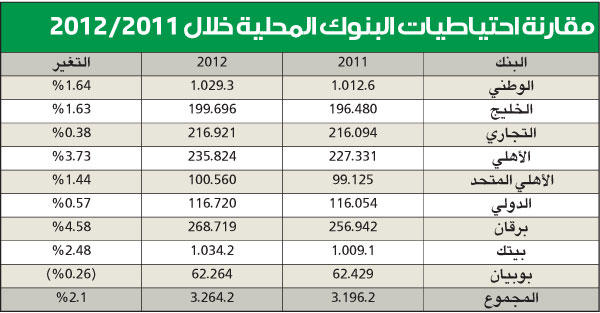 3.2 مليارات دينار إجمالي احتياطيات البنوك المحلية في 2012