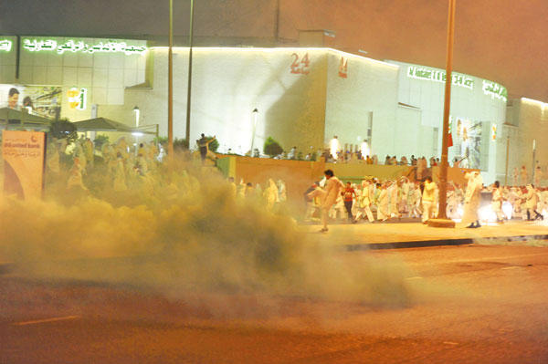 عاشت منطقة الأندلس ليلة ساخنة أمس على وقع المواجهات وعمليات الكر والفر بين القوى الأمنية والمشاركين في مسيرة التضامن مع النائب السابق مسلم البراك استنكارا لصدور حكم بسجنه بتهمة المساس بالذات الأميرية.واحتشد مناصرو البراك أمام ديوانه في الأندلس حيث ألقى كلمة ترافقت مع اطلاق رشقات من الرصاص في أجواء المنطقة، لينطلق المشاركون في مسيرة باتجاه مخفر الاندلس الذي كانت القوات الخاصة فرضت طوقا حوله منعا لاقتحامه.وواجهت القوات الخاصة المسيرة التي حاول بعض المشاركين فيها اقتحام المخفر بالقنابل الدخانية والصوتية، في حين أطلق المشاركون بالمسيرة الاسهم النارية باتجاه القوات الخاصة، وتسببت هذه المواجهات باندلاع حريق في مركبة للبلدية أمام مطعم في جمعية الأندلس، كما اندلع حريق خارج مبنى الجمعية وقد منع المتظاهرون سيارات الاطفاء من اخماد الحرائق وهددوا بتحطيم سيارات الاطفاء، مما حمل رجال الاطفاء على الانسحاب من المكان.واستمرت حالة الكر والفر بين القوات الخاصة والمتظاهرين مع محاولة متكررة من المشاركين في المسيرة للوصول إلى مخفر الأندلس من خلال تسلق جدران وحواجز مبنى الجمعية الملاصق للمخفر، ولم تهدأ الامور نسبيا إلا قرابة الحادية عشرة ليلا مع مغادرة المشاركين الموقع والعودة باتجاه ديوان البراك. وقد نتج عن هذه المواجهات إصابة 10 اشخاص، تنوعت إصاباتهم ما بين اختناق وجروح طفيفة، وقد نقل اكثرهم الى ديوان البراك.تطورات النهاروجاءت هذه التطورات المسائية بعد أحداث حافلة نهار أمس اتخذت خلالها قضية الحكم بسجن النائب السابق مسلم البراك منحى تصعيديا مع امتناع البراك عن تسليم نفسه "إلا بشروطه" ولجوء "الداخلية" في المقابل إلى اقتحام منزله لتنفيذ الحكم القضائي من دون العثور عليه.وترافقت هذه التطورات مع إعلان وزارة الداخلية التزامها الاصول القانونية في اجراءات اقتحام المنزل، في موازاة تصريحات اطلقها البراك وحملت لغة تهديد للعناصر الامنية، حيث قال امام المتضامنين معه في ديوانه بالاندلس: "والله لوعادت القوات يا وزير الداخلية سيعودون لكم و(حلوجهم) متروسه تراب، يا قوات الخيبة".وأضاف: "إذا فتحت المعتقلات للشرفاء ولم نروحلها فمن يروحلها إذا؟ وأنا أقول للمرة الأخيرة أنا موجود بين أنصاري وأصحاب الضمائر الحية، وأنا أنتظركم لتأتوا بكتاب رسمي. أنا من يطالبك يا وزير الداخلية باحترام القانون والدستور، فما فعلته قواتك اليوم من اقتحام المنزل وترويع الآمنين وضرب الأطفال عمل سلطوي قمعي جبان".وإذ أشار البراك الى انه عندما استيقظ امس ذهب إلى منزله في قرطبة ما يفسر عدم وجوده في ديوانه بالأندلس أثناء اقتحامه، ختم بقوله: "الخطوات القادمة مسؤوليتي، وأنا من سيتصرف بها... رفعت الأقلام وجفت الصحف". ائتلاف المعارضةومن جانبه، أعرب ائتلاف المعارضة عن استنكاره لاقتحام ديوان البراك، ووصف هذا الاجراء بانه " تجاوز لكل الشرائع السماوية والقوانين".وقال الائتلاف في بيان أصدره امس إن "ازالة الاحتقان السياسي المشهود حالياً يبدأ بإقالة الحكومة الحالية وحل مجلس الصوت الواحد والعودة إلى النظام الانتخابي السابق، وبالتالي الرجوع للأمة في اختيار من تراه لتمثيلها تمثيلاً شرعياً صحيحاً"، مضيفا "ونعلن رفضنا لكل الاجراءات القمعية التي جرت وتجري حالياً، وان خياراتنا الميدانية مفتوحة حتى يتم تصحيح هذا النهج المتفرد بالسلطة الذي يعصف بالبلد ويهدد أمنه واستقراره".«الداخلية»: إجراءات محاولة القبض على البراك قانونية«أمر الضبط الأصلي أظهره الطراح للمعنيين فتعرض للإساءة»أعلنت وزارة الداخلية أن ما تناقلته بعض وسائل الاتصال الاجتماعي أمس عن محاولة القبض على النائب السابق مسلم البراك، تنطوي على ادعاءات ومغالطات تصل إلى حد الافتراء.وأشارت "الداخلية"، في بيان أصدرته أمس، إلى أنها "تربأ بنفسها عن ذلك، فهي تعي أنها في دولة القانون والمؤسسات الدستورية، وأن ما حدث ما هو إلا محاولة لإلقاء القبض على النائب السابق تمت وفق