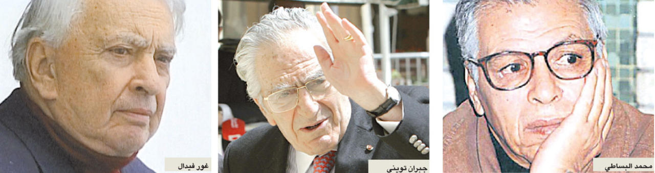في الولايات المتحدة الأميركية، رحل غور فيدال عن 86 عاماً نتيجة مضاعفات في الالتهاب الرئوي الذي كان مصاباً به. تمتد حياة فيدال الأدبية على أكثر من 60 عاماً، وقال ذات مرة إنه يأمل بأن يتذكره الآخرون بوصفه «المرء الذي كتب أحسن الجمل في زمنه». وكان معروفاً بدماثته وطرافته، كما تتبدى في قوله «كلما ينجح صديق أموت قليلاً». وكان فيدال أديباً متنوع المواهب والاهتمامات ويكاد يكون آخر الكتاب المعروفين الذي قاتلوا في الحرب العالمية الثانية.رحل في أميركا أيضاً راي برادبوري عن 91 عاماً، وهو رائد الخيال العلمي ومؤلف «فهرنهايت 451» عام 1953 و{يوميات في المريخ». وفي البرتغال، رحل الكاتب أنطونيو تابوكي (68 عاماً)، مؤلف «ليل هندي» و{بيريرا يزعم». كان تابوكي يضع قدماً له في الشعر والأخرى في المسرح والقلب يخفق للرواية، أما الرأس فقد بقي قريباً من السحاب. كذلك غامر بكتابة الرواية البوليسية، وأصدر كثيراً من القصص القصيرة.أسماء روائية كثيرة رحلت أيضاً، أبرزها الفرنسي لويس كاريت عن عمر يناهز 98 عاماً، وهو عرف تحت القلم باسم «فيليسيان مارسو». كذلك رحل البلجيكي لويس كاريت صاحب «خطيئة التعقيد» و{الجثة الرائعة»، والروائية الأميركية الشهيرة هيلين غورلي براون والروائية الصينية- البلجيكية هان سويين.شعر على صعيد الشعر، رحل في مصر الشاعر حلمي سالم عن 61 عاماً، تاركاً خلفه عشرات الدواوين والمؤلفات النقدية التي اشتركت في ما بينها في تمجيد المحبة والثورة والحياة. وفي لبنان، رحل الشاعر العامي يونس الابن، صاحب القصائد في تمجيد جمال بلاده. أما في فرنسا فرحل الشاعر جاك دوبان عن عمر يناهز الخامسة والثمانين، مخلفاً وراءه مجموعات شعرية حفرت عميقاً في الشعر الفرنسي بجدتها وثورتها ومجازفتها، ذلك بعد المدارس و{الرواد» أمثال بروتون وإيلور وآراغون وبونفوا وبياجان جوف وسان جون برس. وفي الولايات المتحدة الأميركية، توفي الشاعر جاك غيلبرت عن عمر ناهز 87 عاماً إثر إصابته بالتهاب رئوي. وفي العراق توفي الشاعر العراقي محمد علي الخفاجي إثر صراع طويل مع مرض الكلية، مخلفاً دواوين شعرية كثيرة.الفكرعلى الصعيد الفكري، فقدت الساحة اللبنانية غسان تويني الملقب بـ «عميد النهار» عن 86 عاماً. وهو السياسي والدبلوماسي والمفكر صاحب المؤلفات الكثيرة حول لبنان والصحافة وساحة البرج والقضايا السياسية والدبلوماسية والجمهورية اللبنانية.رحل في فرنسا عن 98 عاماً روجيه غارودي، الكاتب الذي شكك بالمحرقة اليهودية، وكان متقلباً في توجهاته الفكرية بين المسيحية والشيوعية والإسلامية... وفي مصر رحل المفكر أنور عبد الملك عن 88 عاماً. أبرز كتبه التي نالت شهرة واسعة: «المجتمع المصري والجيش، دراسات في الثقافة الوطنية، الجيش والحركة الوطنية، الفكر العربي في معركة النهضة، نهضة مصر، ريح الشرق، مدخل إلى الفلسفة، تغيير العالم، الصين في عيون المصريين، المواطنة هي الحل».في بلجيكا رحلت عن 84 عاماً فرانسواز كولين، وكانت تعد أحد أبرز الوجوه التاريخية للحركة النسوية. كانت شديدة الحماسة للقضايا النسوية، واسست في عام 1973 بالتعاون مع جاكلين أوبيناس أول مجلة نسوية باللغة الفرنسية باسم «لي كاييه دو غريف». تنوع نتاج كولين بين الكتابة المعاصرة والبحث الشعري والالتزام النسوي، ونشرت روايات ومقالات عدة.كذلك غادرتنا خلال عام 2012 أسماء أدبية وثقافية كثيرة، أبرزها المسرحي المعروف أسامة العارف والمهندس المعماري عاصم سلام.