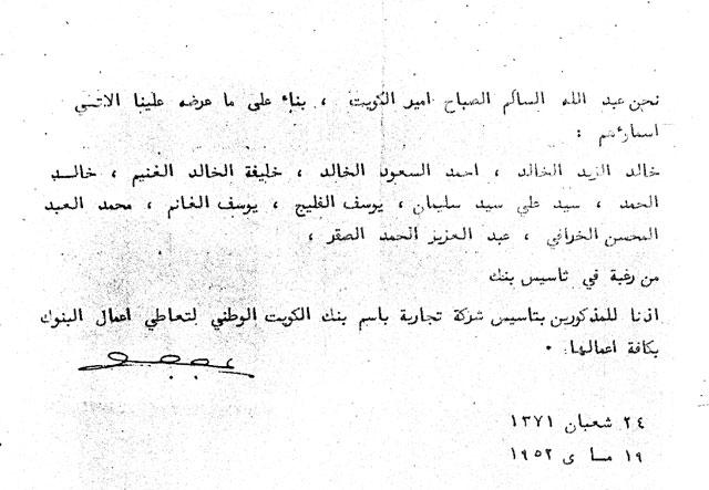 يعتبر المرسوم الأميري الصادر لتأسيس البنك الوطني قبل ستة عقود، أحد اهم القرارات السيادية في ذلك الوقت.