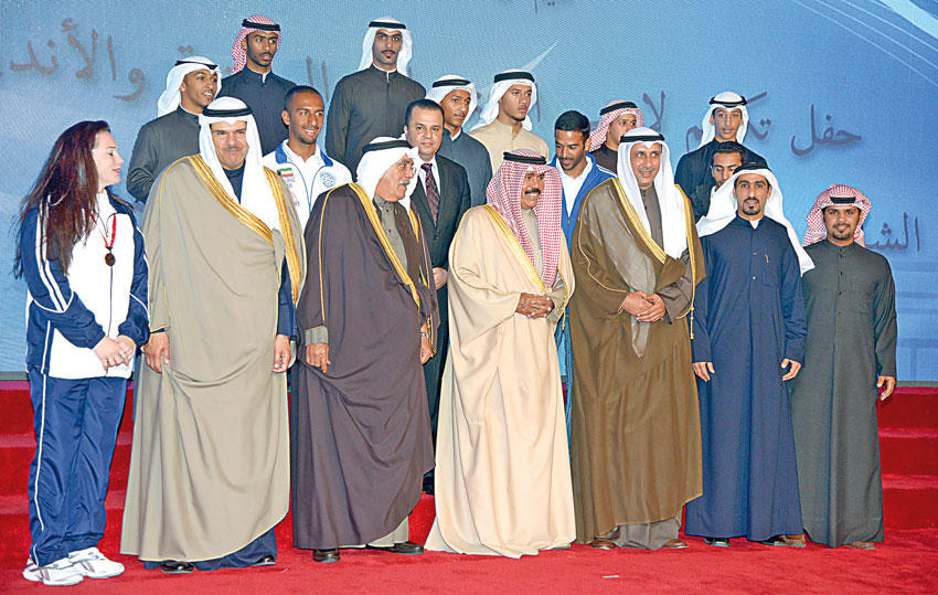 تحت رعاية وحضور سمو ولي العهد الشيخ نواف الأحمد أقامت الهيئة العامة للشباب والرياضة أمس، بفندق كراون بلازا، حفل تكريم اللاعبين المعتزلين ولاعبي المنتخبات الوطنية، والأندية الرياضية الشاملة والمتخصصة الحاصلين على مراكز متقدمة على المستوى الخليجي والعربي والقاري والعالمي.