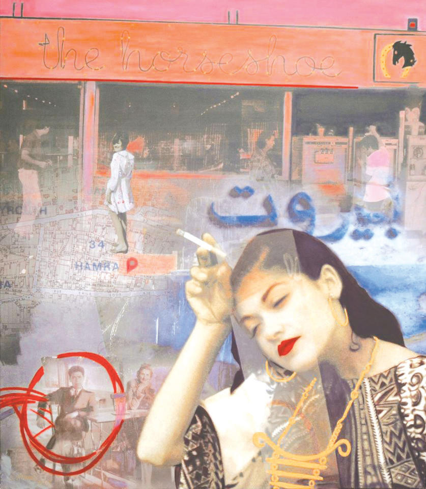 يقدم معرضAfterimage لجنان مكي سلسلة من اللوحات والأعمال الشخصية للغاية، التي تبدو كأنها مذكرات للفنانة وعائلتها في بيروت ومطارها وشوارعها ومقاهيها. تغلب على المعرض الصورة الفوتوغرافية كتعبير عن الزمن والأحوال والحنين، وعلى خلفياتها كولاج مذكرات الذات والشارع والسفر والبريد والطيران. وفي لوحات أخرى يسيطر استذكار زمن مآسي الحرب وشبح الدمار والخراب والموت.تعمل الفنانة على الصور الشخصية من خلال كولاج لتشكيل «ومضات» من ماضيها الذي يتداخل مع حاضرها وماضي عائلتها في السفر والترحال. تستدعي من خلال أعمالها وصورها لغة اللقطة الشخصية، والمشهد العام العالق في الذاكرة من الخلف، معتمدة الأسلوب التقليدي في تشكيل صور فوتوغرافية مع الألوان والباستيل. كذلك تستعيد شعوراً بالحنين من داخل تراكيبها لتبدو اللوحة كأنها تراكم أزمنة وأوجه، أو لنسمي اللوحة «بيتاً بمنازل كثيرة». تسرد اللوحات وجه لبنان المتغير وتفسر الألم الذي مزقه، فمن خلف السيجارة وأحمر الشفاه ثمة سرد وتفاصيل تطاول المدينة كلها من التسكع الى المقاهي والناس والحياة برمتها.