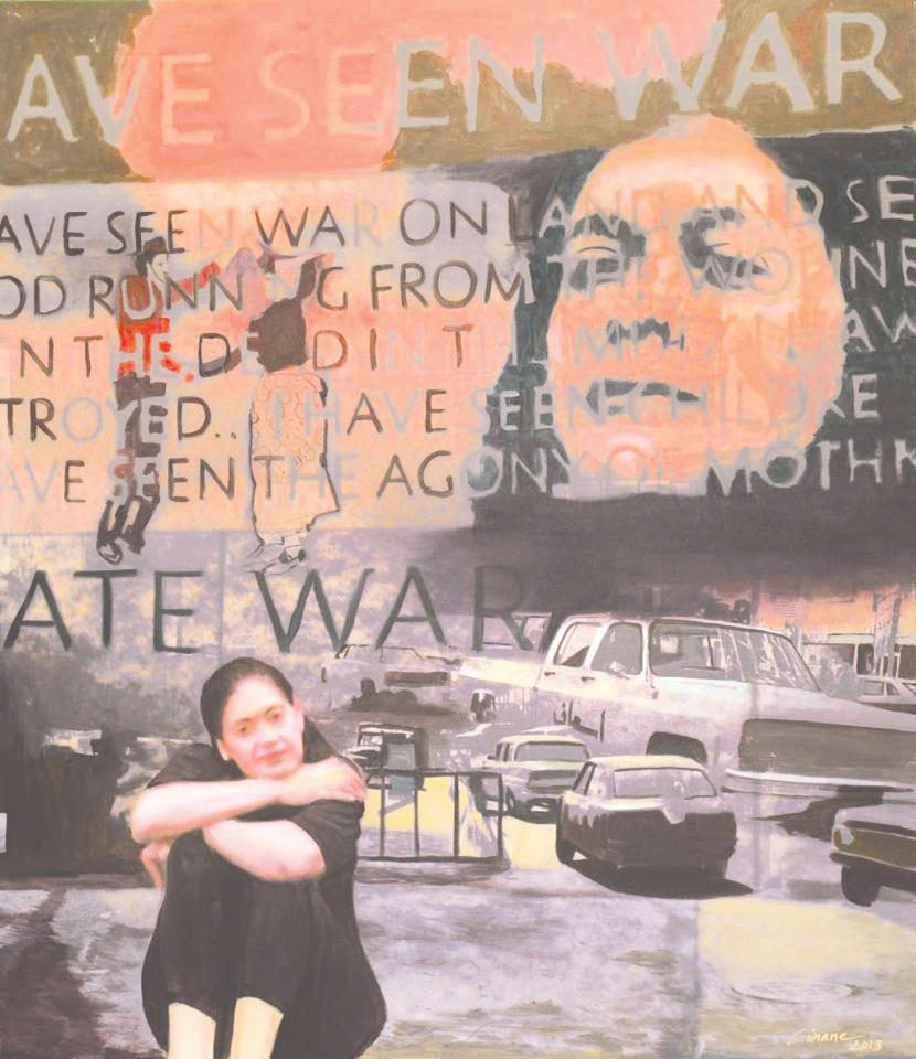تمليح الأشياء تقدم جنان مكي باشو في أعمالها قصة غنية في كل لوحة، والقصة ليست في التفاصيل بل في تمليح الأشياء سواء درج البيت القديم أو المطار حيث تجد ما يوحي بقصص ثنائية بين الأهل والأبناء، بين بيروت والفنانة، وبين بيروت والحرب. ولا يغيب الحنين عن الأعمال المعروضة، وذلك من خلال إدخال صور قديمة في الكولاج أو مشهدية المنزل القديم والصور الرومنسية. وتبدو اللوحات ناطقة، فتسمع إنذار الإسعاف يصعد من وراء الألوان. إحدى اللوحات تمثل مشهداً من ذاكرة الحرب الأهلية بعنوان «السلام»، صورة مثل أيقونة عن زمن الموت والألم والحرب، صورة الأم التي ما زالت في الذاكرة، فهي أم تحضن ابنها خوفاً من الموت أو ترفع صورة ابنها الذي خطف أو قتل في الحرب. الأم في الصورة في لحظة تأمل وصفاء روحي كأن الفنانة من خلال المشهد أرادت محو الدمار من الخلف، جعلت إحساس الأم حاملة الطفل أقوى من باقي المشهد. هنا لغة الروح أقوى من لغة الخراب. يُذكر أن جنان مكي رسمت في معرض سابق بشظايا القنابل صرختها ضد الحرب، وصوَّرت خارطة بيروت مشطورةً كجسد يدمي.خلال حياتها الخصبة بالتجارب، تنقّلت جنان مكّي باشو بين أكثر من 22 بيتاً في خمسة بلدان وثلاث قارات. التشكيليّة والأستاذة الجامعيّة ولدت في تلّة الخياط، ودرست الأدب الفرنسي والفنون الجميلة في «الجامعة اللبنانيّة» قبل أن تهاجر مع زوجها وولديها على أثر اندلاع الحرب الأهليّة. في فرنسا والولايات المتحدة، درست الفنون التشكيليّة بين رسم وطباعة حجريّة، وأقامت في أميركا بين 1984 و2000 تاريخ عودتها إلى بيروت. بعض أعمالها من مقتنيات «المكتبة الوطنيّة» في باريس، «مكتبة الإسكندريّة» ومتاحف بين واشنطن وريو دي جينيرو ونيويورك والقاهرة.