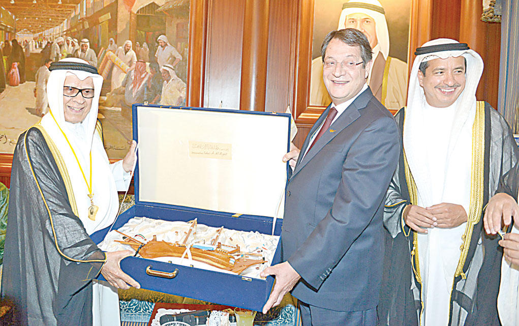 اختتم رئيس قبرص نشاطه أمس بزيارة إلى ديوان المعجل، جرى خلالها تكريم العم فهد المعجل نظير خدماته الجليلة الخاصة بالعلاقات الكويتية- القبرصية.