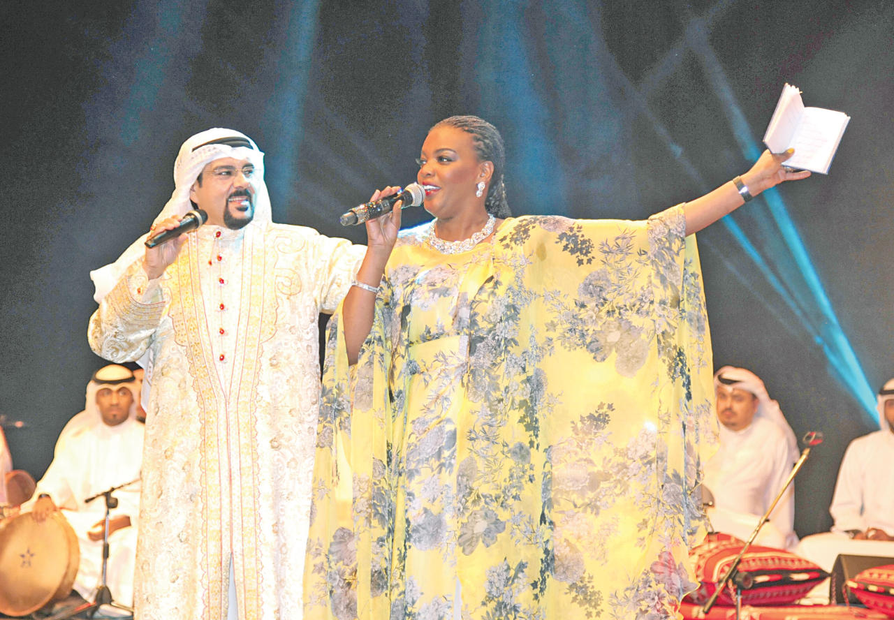 تستحق ليلة الفنون الشعبية التي أحياها كل من المطربين الشهيرين سليمان القصار وفطومة، أن نطلق عليها ليلة من أروع الأمسيات الغنائية الأصيلة، التي احتضنها مهرجان الموسيقى الدولي السادس عشر، وسط حضور جماهيري لافت ملأ مسرح الدسمة، وتفاعل مع الفنون تصفيقاً وغناءً، من السامري إلى الخماري والقادري والنجدي والصوت إضافة إلى الطنبورة والخيّالي.انطلق برنامج الحفل بالفن النجدي في دويتو غنائي جميل بين القصار وفطومة بدأ مع «جينا بفضل الله وعز كريم» ثم «والصباح ما نبي غير الصباح» و»سلام يا دار سلوى ومن سكن فيها»، ثم جلس القصار مع فطومة التي شرعت بغناء السامرية المعروفة «أبشري يا عين» للمطربة الراحلة عايشة المرطة، من كلمات الشاعر يوسف المنيع وألحان عثمان السيد.