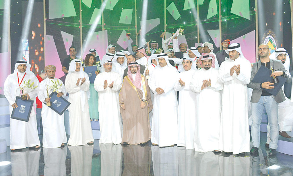 بعدها، ألقى رئيس اللجنة المنظمة عبدالله عبدالرسول الكلمة الختامية للمهرجان، مخاطباً جيل الشباب بقوله: «أنتم من تحملون رسالة ترسيخ المفهوم الحقيقي لدور المسرح في بناء المجتمع، وأنتم من يكملون مسيرة الرواد الذين أرسوا قواعد تأصيل دور المسرح وفنونه، كما أن الفوز الحقيقي في هذا المساء هو لكم جميعا، والذي تجلى بعطائكم المخلص، والمثابرة الجادة للنهوض بالواقع المسرحي الشبابي الخليجي، شكرا على روح التنافس الشريف، التي اتسمت بروح الأخوة والمحبة بينكم، كما سعدنا بحواراتكم واطروحاتكم».وشهد الحفل تكريم رؤساء الوفود الخليجية المشاركة والفرق المسرحية المشاركة بالمسابقة الرسمية وبالعروض الموازية، والأمير طلال بن بندر، وأعضاء لجنة التحكيم، والممثلين الصغيرين عبدالله وعبدالرحمن العطاوي، وعائشة الحشاش كأفضل متابعة لعروض المهرجان.ومنحت لجنة التحكيم شهادات التميز لمجموعة من الممثلين وهم: عبدالله الهاجري عن دوره في «مساء للموت» - قطر، وسعاد الحسيني وخالد السجاري عن دورهما في «حنظلكم واحد» – الكويت، وهشام صالح آل جميل عن دوره في «الهام»، وأيمن القديم عن دوره في «العجوزان» – الإمارات، ومحمد العبدالجليل عن دوره «الحلم» – البحرين، وحمد المويجد عن تنفيذ إضاءة «ما وراء العتمة» - السعودية.جوائز المهرجانوقد فاز بجوائز المسابقة الرسمية وعددها ثلاث عشرة جائزة:أفضل إضاءة: إبراهيم الشامسي عن «عجوزان» – الإمارات.أفضل أزياء: سمية جاسم «الحلم» – البحرين. أفضل مكياج: محمد اليماحي عن «عجوزان» – الإمارات.أفضل مؤثرات صوتية: محمد الحمد عن «ما وراء العتمة» – السعودية.أفضل ديكور: مناصفة بين فهد المذن عن «حنظلكم واحد» – الكويت، وأحمد الجابري عن «الهام» – عمان.أفضل ممثلة دور ثان: زينب البلوشية عن دورها في «الهام» – عمان.أفضل ممثل دور ثان: مناصفة بين مبارك المعشري عن دوره في «الهام» – عمان، وعبدالرحمن المزيعل عن «ما وراء العتمة» - السعودية.أفضل ممثلة دور أول: مناصفة بين ريم الفيصل عن دورها في «مساء للموت» - قطر وغدير زايد عن «الهام» – عمان.أفضل ممثل دور أول: فهد القريشي عن دوره في «مساء للموت» قطر.أفضل مؤلف: أحمد بن حمضة عن «ما وراء العتمة» – السعودية.أفضل مخرج: مناصفة بين علي الشرشني عن «مساء للموت» – قطر، وعبدالعزيز النصار عن «حنظلكم واحد» - الكويت.أفضل عرض متناغم: مناصفة بين «الحلم» – البحرين، و»الهام» - عمان.أفضل عرض مسرحي متكامل: مسرحية «حنظلكم واحد» – الكويت.