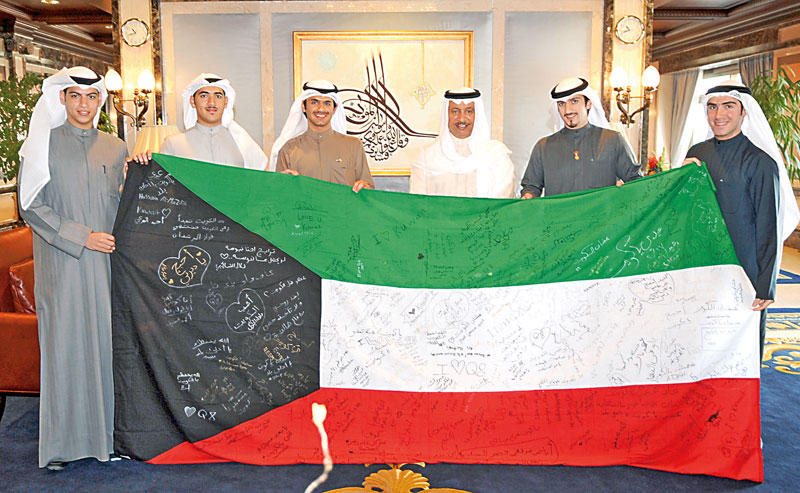 استقبل رئيس مجلس الوزراء سمو الشيخ جابر المبارك بقصر السيف أمس اعضاء جمعية المهندسين الصناعيين بجامعة الكويت، حيث أهدوا إلى سموه علم دولة الكويت بمناسبة احتفال البلاد بأعيادها الوطنية.