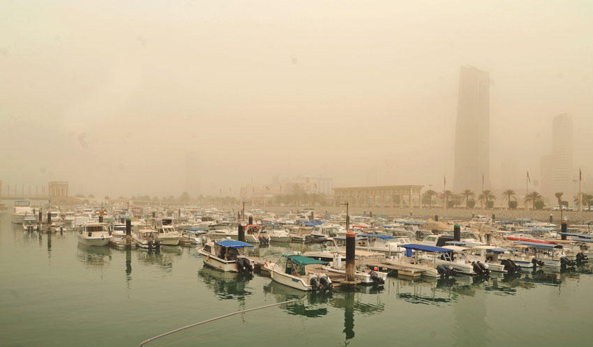 وأضاف ان نشاط الرياح في وسط وجنوب العراق ساعد على حمل الاتربة والرمال باتجاه البلاد وانخفاض الرؤية الافقية. علماً أن انحسار موجة الغبار يترافق مع موجة برودة تصيب البلاد بدءاً من نهاية الأسبوع الحالي.توقف الملاحةمن جهتها، اعلنت مؤسسة الموانئ الكويتية توقف حركة الملاحة البحرية في الموانئ امس بسبب موجة الغبار في البلاد وافادت ان مستوى الرؤية تدنى الى اقل من ميل بحري على ان تعود الحركة مع تحسن الطقس.وقال مراقب قسم المرشدين في ميناء الشويخ الكابتن طارق الجروة في تصريح صحافي ان خروج ودخول البواخر توقف مما استدعى وقف الحركة في الميناء لمنع اي حادث تطبيقا لما تنص عليه اجراءات السلامة البحرية . واشار الى تأخير خروج اربع سفن حيث توجد حاليا في ارصفة الميناء كما توجد سفينة في منطقة الانتظار.من جانبه، قال مدير ادارة العمليات البحرية في ميناء الشعيبة الكابتن فرج السعيد ان هناك سفينة جاهزة تم تأخير خروجها وسفينة في منطقة الانتظار.مرضى الحساسيةوفي سياق التأثيرات الصحية لموجة الغبار، دعا مدير مركز الراشد لأمراض الحساسية د. شجاع العنزي مرضى الربو الى توخي الحذر والأخذ بالاجراءات الطبية اللازمة نتيجة لما تشهده البلاد من احوال جوية سيئة.وأوضح العنزي في تصريح لـ«كونا» امس ان موجة الغبار التي تشهدها البلاد والتي من المتوقع ان تستمر يومين لا تؤثر بشكل مباشر على مرضى الحساسية لأنها غير محملة بحبيبات اللقاح المثيرة للحساسية.واضاف انه في حالة تأثر مريض الربو بشكل كبير بهذه الموجة عليه التوجه الى اقرب مركز صحي أو مستشفى لتلقي العلاج، إذ ان المركز على اتم الاستعداد لأي استفسار يتعلق بصحة المرضى ناصحا المرضى باتقاء مثل هذه الاجواء بعدم الخروج الا للضرورة القصوى ولبس الكمام الطبي.يذكر أن 25 في المئة من سكان الكويت مصابون بمرض الربو حسب الاحصائيات الاخيرة، ويستقبل مركز الراشد للحساسية 5000 حالة شهريا ما بين حالات جديدة ومترددة.