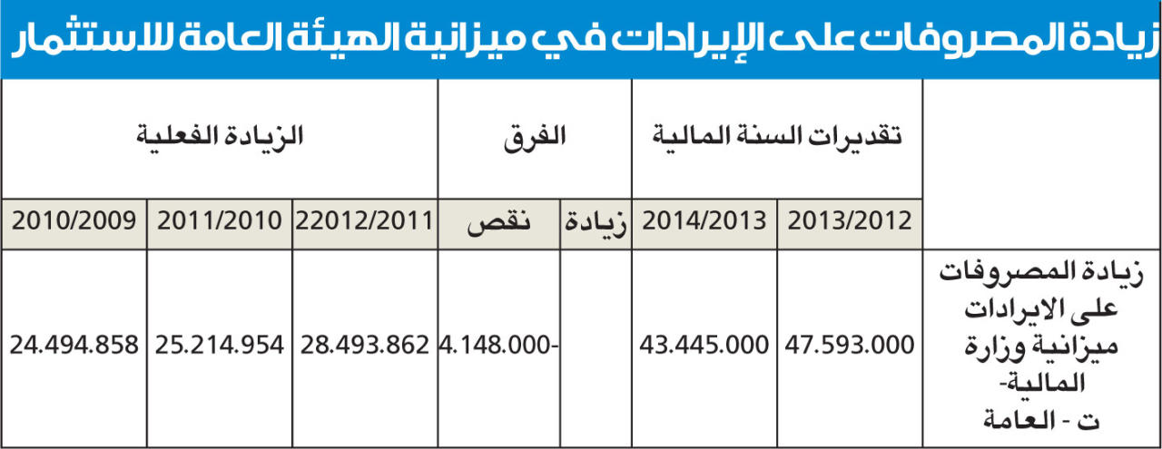 تناقش لجنة الميزانيات والحساب الختامي في اجتماع تعقده غدا الأحد ميزانية الهيئة العامة للاستثمار للسنة المالية 2013/2014، بحضور ممثلين عن وزارة المالية والهيئة العامة للاستثمار وديوان المحاسبة.وأشارت اللجنة في مذكرة تحضرية أعدتها حول ميزانية الهيئة العامة للاستثمار إلى وجود اخطاء في البابين الاول والرابع من حيث اعداد الموظفين وجدول توزيع الدرجات وتكاليف المشاريع والموقف التنفيذي لمشروع مقر الهيئة، وتمت مخاطبتكم لإرسال نسخة معدلة قبل الاجتماع بوقت كاف، ليتم دراسة الميزانية بشكل افضل، بالاضافة الى ان المذكرة التفسيرية لم تكن تفي بشرح بعض البنود التي حصل فيها تغيرات كبيرة كإلغاء اعتماد بند الايجار لمكتب لندن في الباب الثاني.