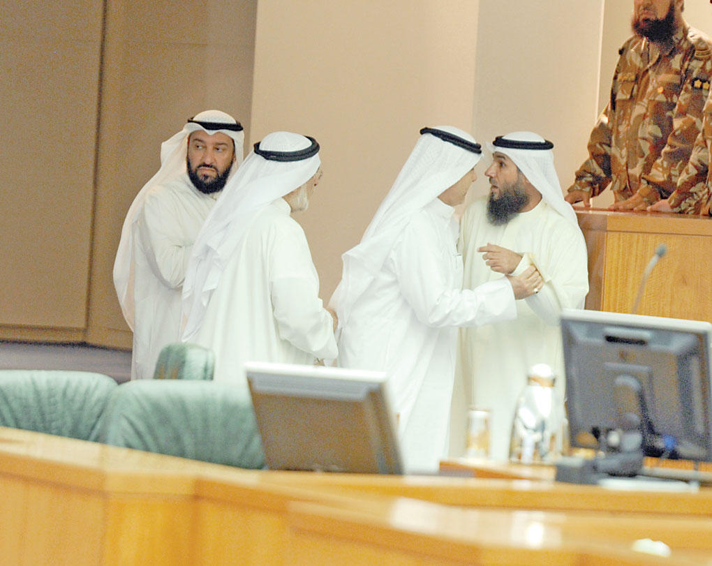 إلا أن الامين العام لم يستجب لنداء الرئيس اثناء نقاش دار بينه وبين النائب الهرشاني على منصة الامانة بصوت غير مسموع. ليقوم بعدها الكندري من مقعده مخاطباً الرئيس الخرينج قائلا: خله يحترم نفسه انا مو ياهل عنده!فرد الهرشاني وهو يهم بالنزول من على طرف المنصة: حسافة حاطلك لحية، مو كفو!لينسحب بعدها الكندري من الجلسة، الأمر الذي أدى الى رفعها من قبل الرئيس الخرينج مدة ربع ساعة، إلا أن الجلسة استمرت مرفوعة ساعتين.