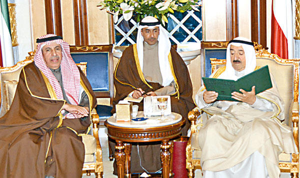 واستقبل سمو الأمير نائب رئيس مجلس الوزراء وزير الخارجية الشيخ صباح الخالد، وسفير المملكة العربية السعودية لدى دولة الكويت د. عبدالعزيز الفايز، حيث سلم إلى سموه رسالة خطية من خادم الحرمين الشريفين الملك عبدالله بن عبدالعزيز آل سعود ملك المملكة العربية السعودية، تتعلق بالعلاقات الأخوية الطيبة بين البلدين والشعبين الشقيقين وآخر المستجدات على الساحتين الإقليمية والدولية.وحضر المقابلة نائب وزير شؤون الديوان الأميري الشيخ علي الجراح.