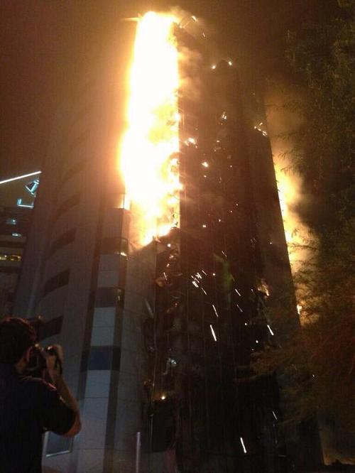 وكانت النيران أتت على المبنى بالكامل المكون من 11 طابقا، والذي يقع بالقرب من مبنى مزايا بمنطقة الجابرية، كما تسبب الحريق باشتعال السيارات والعمارات حول المبنى.