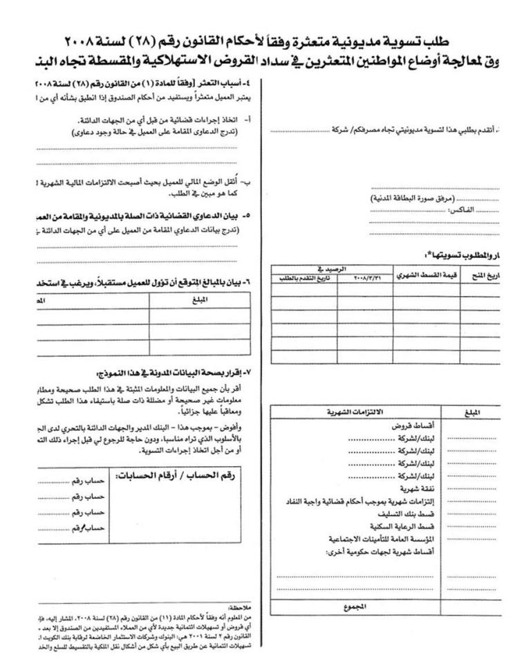 عادت مشكلة القروض إلى واجهة التداول الداخلي، على وقع تجدد المطالبات النيابية بإسقاط فوائد تلك القروض التي تؤرق عشرات آلاف الأسر الكويتية.وفي موازاة الأزمة التي يعيشها أكثر من 131 ألف مواطن مقترض، برزت تحركات نيابية لمعالجة هذا الملف المزمن، وهو ما عبرت عنه مواقف ومطالبات كثيرة كان أبرزها وضع رئيس اللجنة المالية بالبرلمان النائب يوسف الزلزلة مقترحاً على طاولة المجلس لإسقاط فوائد القروض بأقل تكلفة للدولة، وهو الاقتراح الذي يرى الزلزلة وعدد من نواب المجلس انه يحافظ على المال العام، وينصف المواطنين المقترضين الذين تحملوا تبعات انعدام تطبيق لوائح البنك المركزي على البنوك قبل عام 2009، وتحديدا من شهر سبتمبر 2008. على أن يتم تخفيض القسط إلى 25 او 30% من الدخل الشهري بدلاً من 40%، أما آلية إسقاط هذه الفوائد فتتحملها الحكومة، ولكن دون تحميل أعباء مالية لميزانية الدولة، وتحسم تكلفة المقترح البالغة ملياراً و700 مليون دينار من الـ 0.5% التي تحصلها الدولة سنويا على الودائع الحكومية في البنوك.