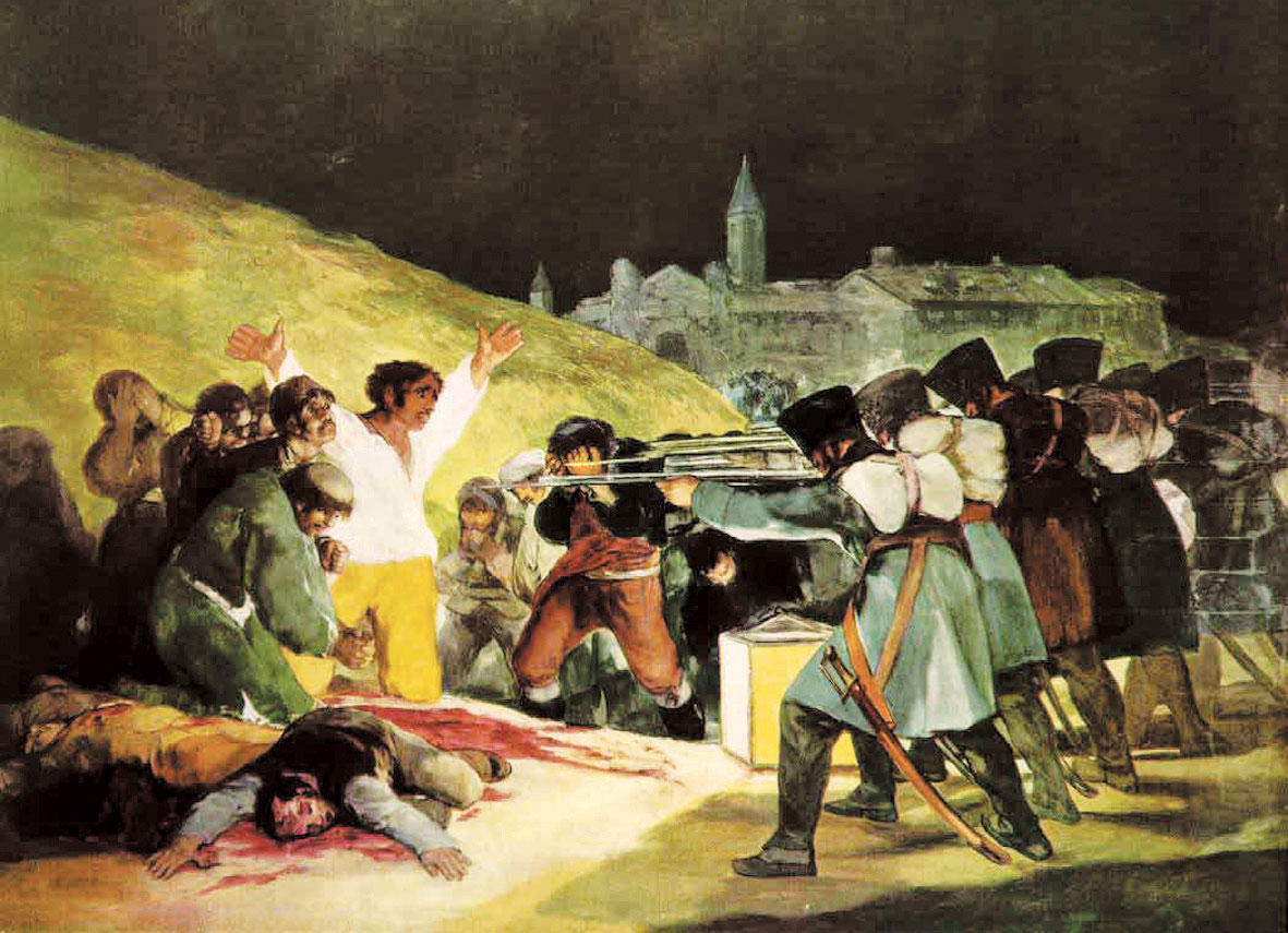 جثة {لورينزو} على عربة مهترئة يحوم حولها عدد من الأطفال، فيما كانت {اينياس} نصف المجنونة والتي اغتصبها عضو محكمة التفتيش والمتنور لاحقاً لورينزو في سجنها الذي قبعت فيه سنوات طويلة، تمسك بيده، تلثمها وتقبلها، وتبتسم ببلاهة. أما الفنان فكان يلحق بكل هذا الركب من دون أن يتمكن من الإصغاء إلى النشيد الجنائزي للجوقة المرحة... الجثة والأطفال والفنان والحمقاء نصف العاهرة... موكب يخط طريقه إلى الأمام عدا طفل شاذ يمشي محدقاً إلى الخلف، مختتماً بذلك آخر مشهد من {أشباح غويا} حيث يمكن تلمس نهاية، أرداها المخرج التشيكي فورمان، نهاية مفتوحة.يتسم غويا الأصم برؤية خارقة استطاعت أن تستشف في وعد التحرير النابليوني عبودية وطغياناً أشد فتكا، تجليه الفتاة {اينياس} التي كانت تشكل على امتداد التجربة الفنية موديلاً ساحراً وشاهد إدانة في آن، إدانة لعهود الكنيسة، كما لعهد التنوير وحقوق الإنسان والمواطن، كأن الفنان أراد أن يعلن من خلال أشباحه عن موت وشيك للحداثة الإنسية... لإنسان {يتقدم} ولكن إلى الخلف... لخطاب متلون يحجب وحشيته... لكائن شبحي فينيقي يتعالى على الزمن ويتسلل إلى الأقنعة كلها، في مرونة كاملة للشبح المنتصر. وفي لعبة الانتصارات والمحاكمات المتبادلة بين التنوير ومحكمة التفتيش يبدو التاريخ كما لو كان يمشي على الجثث، التاريخ معركة طاحنة مباغتة مستهترة، {لا تتقدم الأزمنة إلا دوساً على الجموع وسحقاً لها}، كما يقول سيوران الذي لا يرى في المستقبل إلا هستيريا كونية.