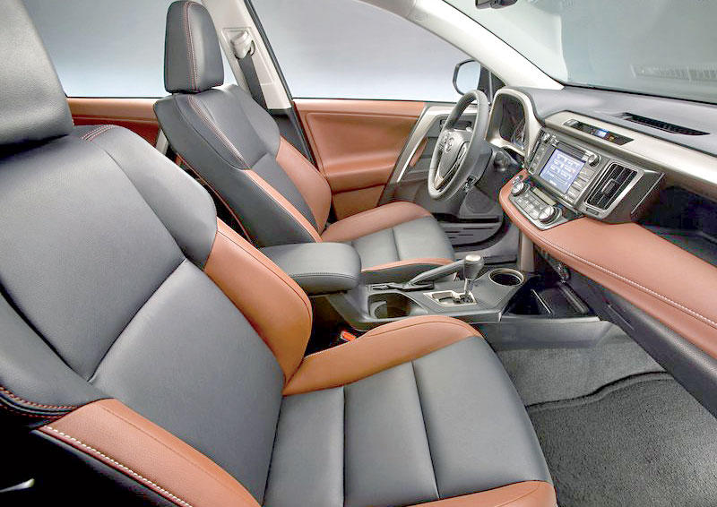 المحرك والناقلويأتي RAV4 الجديد كلياً بمحرك أربع سلندرات بسعة 2.5 لتر يعمل بتقنية VVT-i التي تساعد على توفير طاقة وكفاءة أكبر عن طريق التحكم في توقيت نظام الادخال والعادم لينتج المحرك 176 حصاناً عند 6,000 دورة في الدقيقة وعزم 233 نيوتن/ متر عند 4,100 دورة في الدقيقة.وقد تم استبدال ناقل الحركة الآلي ذي الأربع سرعات بآخر ذي ست سرعات مع نظام تغيير تتابعي. وتم تفعيل نسب الترس الأول والثاني بشكل يناسب القيادة داخل المدينة. وللمحافظة على عدد منخفض لدورات المحرك في الدقيقة ورفع عدد الكيلومترات التي يمكن قطعها مقارنة باستهلاك الوقود، تم تحويل كل من الترس الخامس والسادس إلى نظام التروس العالية (أوفر درايف).وتم تصميم نمط القيادة الاقتصادي ECO الجديد ليوفر قيادة أكثر كفاءة وبالتالي إتاحة مزيد من خفض مستوى استهلاك الوقود.إطلالة متفوقةتم منح مقصورة RAV4 الجديدة إطلالة متفوقة ومتطورة بملامح رفيعة المستوى وأجهزة تحكم في متناول السائق. وقد تم تصميم لوحة العدادات لتركز على السائق وتكون في متناوله بسهولة، كما يمنح تصميم لوحة العدادات شعوراً بالرحابة للراكب الأمامي.وتتميز لوحة العدادات والمقاييس في RAV4 بإضاءة جديدة زرقاء اللون عالية الوضوح، بحيث تتيح الرؤية في كافة الظروف، إلى جانب رؤية موحدة وصافية أثناء الليل.وزودت بعمود عجلة قيادة يمكن تعديله طولاً وارتفاعاً يدوياً كتجهيز قياسي، وتشتمل الطرازات الأساسية والمتوسطة على عجلة قيادة مصنوعة من اليوريثان، بينما تكون عجلة القيادة مكسوة بالجلد في الطراز الأعلى. وتحمل عجلة القيادة في كافة طرازات RAV4 مفاتيح للتحكم بنظام الترفيه الصوتي، ونظام الهاتف بتقنية البلوتوث، وشاشة المعلومات.ويتمتع كل من مقعد السائق والراكب الأمامي في جميع طرازات RAV4 بظهر رشيق، ليوفر مساحة أكبر لركبة الراكب في المقعد الخلفي. ويمكن طي مقاعد الصف الثاني جزئياً أو كلياً بنسبة 60/40 بحيث تميل بعدة درجات لتعزز من راحة الركاب.زجاج أخضروستتوفر RAV4 الجديدة بزجاج مظلّل أخضر اللون مخفّف للأشعة فوق البنفسجية ومصابيح LED بضوء نهاري ونظام مثبت السرعة ونظام الرؤية الخلفية. وتكمل هذه المواصفات مرايا جانبية كهربائية وأقفال الأبواب والنوافذ تعمل آلياً إلى جانب مسّاحة للزجاج الخلفي.ويتوفر كتجهيز قياسي بكافة طرازات RAV4 نظام ترفيه صوتي مزود بشاشة لمس عالية الدقة مقاس 6.1 بوصات، استقبال موجات AM وFM وست مكبرات للصوت، ومشغّل للأقراص المدمجة ونظام اتصال بلوتوث، ومقبس AUX وUSB.وتم تجهيز الفئة الأعلى من RAV4 بنظام ملاحة صوتي (AVN) يشمل شاشة لمس عالية الدقة (TFT) مقاس سبع بوصات ونظام ألوان (WVGA)، ونظام ضبط الصوت التلقائي (ASL) الذي يقوم بضبط مستوى الصوت والخصائص الصوتية الأخرى تلقائياً استناداً إلى مستويات الضوضاء الداخلية بهدف الوصول إلى تشغيل المقاطع الصوتية بمستوى صوت مثالي وجودة عالية، اضافة الى توفر مايكروفون متوافق مع نظام الملاحة الذي يتعرف على الصوت، ونظام الهاتف بتقنية البلوتوث.أمن x أمان جهز جديد تويوتا بأعلى معايير الأمان وحماية الركاب والمشاة التي تطورت على مدى ثلاثة أجيال من عمر هذه المركبة المدمجة الرياضية متعددة الاستخدامات، مع توفير أعلى مستويات الأمان قبل وقوع الاصطدام وبعده.ويتوافر في RAV4 2013 ست وسائد هوائية متطورة، كما تم تزويد RAV4 بنظام التحكم في السحب (TRC) ونظام توزيع قوة المكابح الإلكتروني (EBD) ونظام التحكم بثبات المركبة المحُسن (VSC) ونظام مساعدة المكابح (BA) ونظام المكابح المانعة للانغلاق (ABS)، ومفاضل تلقائي محدود الانزلاق ، وحساسات ركن خلفية.ويتم إضافة مفاضل تلقائي محدود الانزلاق (LSD) إلى طرازات الدفع الثنائي مع نظام التحكم بثبات المركبة، حيث يقوم المفاضل التلقائي محدود الانزلاق (LSD) بالتحكم في دوران العجلات للمساعدة على تحرير المركبة عندما تكون إحدى العجلات غير ملامسة للطريق بالاضافة الى تحسين الأداء عند الانطلاق على الطرق ذات الطبيعة المقاومة، مثل الطرق الرملية.مبارك الساير للعميل: