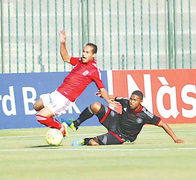 ضربة جزاء ضائعةوكثَّف الأهلي هجومه واحتسب الحكم ضربة جزاء للفريق الأحمر في الدقيقة 37، تصدى لها وليد سليمان وسددها لكن حارس الضيوف تصدى للكرة، وفي الدقائق الأخيرة من عمر الشوط الأول حاول الفريقان التسجيل، وسدد فيسو كرة عرضية قوية وخطيرة تصدى لها ببراعة شريف إكرامي، بعدها أشهر الحكم بطاقة أخرى صفراء لأحمد عبدالظاهر ليتم طرده، واحتسب الحكم ضربة حرة مباشرة للأهلي، ثم أطلق الحكم الجزائري صافرته معلنا نهاية الشوط الأول بتقدم الضيوف بهدف نظيف.انهيار أحمر ومع بداية الشوط الثاني دفع المدير الفني للأهلي محمد يوسف بالسيد حمدي بدلاً من شهاب الدين أحمد، ليلعب بدلاً من المطرود عبدالظاهر في مركز المهاجم، ووضح تحسن أداء الأهلي في الدقائق الأولى ولاحت بعض الفرص لكن الرعونة تسببت في عدم اكتمال الهجمات بالشكل الأمثل.وحل دومينيك دا سيلفا بديلاً لوليد سليمان في الدقيقة 68، ونجح أورلاندو في تسجيل هدف ثان من ركلة جزاء في الدقيقة 73 تسبب فيها أحمد فتحي، وتمكن الضيوف من إضافة هدف ثالث في الدقيقة 76 من خطأ آخر للدفاع والحارس، ولم يكتف لاعبو أورلاندو بتلك النتيجة وواصلوا الضغط الهجومي على مرمى الأهلي وحرمتهم العارضة من هدف رابع، لتنتهي المباراة بفوز الضيوف بثلاثية نظيفة.«الأبيض» يتمسك بالأمل رغم الخسارةوفي الكونغو، تلقى الزمالك هزيمته الأولى بدوري المجموعات بدوري أبطال إفريقيا أمام مضيفه ليوبار الكونغولي بهدف دون رد، ليتجمد رصيد الأبيض عند نقطة واحدة من التعادل في الجولة الأولى أمام الأهلي، في حين ارتفع رصيد ليوبار للنقطة الرابعة ويتقاسم صدارة المجموعة الثانية مع أورلاندو الجنوب الإفريقي.أحرز المهاجم كالايما هدف ليوبار في الدقيقة 36 من ضربة جزاء، احتسبها الحكم المدغشقري حمادة نمبيازاز بعد لمسة يد من محمود فتح الله الذي تعرض للطرد للإنذار الثاني، بعدما حصل على الأول في الدقيقة 17، وهو الأمر الذي ترك آثاراً سلبية على الفريق الذي استكمل اللقاء مدة 54 دقيقة بـ10 لاعبين فقط، ورغم الهزيمة إلا أن الجهاز الفني للفريق الأبيض بقيادة حلمي طولان مازال متمسكاً بالأمل.من جانبه، أكد المدرب العام للزمالك أسامة نبيه، أن فريقه واجه ظروفاً معاكسة وهي اللعب وقت الصيام وعلى ملعب سيئ، وكذلك الغيابات وطرد فتح الله واللعب بنقص عددي، موضحاً أن موقف الزمالك في المجموعة ليس بالسوء الذي يظنه البعض خاصة أن الفريق قادر على التعويض في المباريات المقبلة.