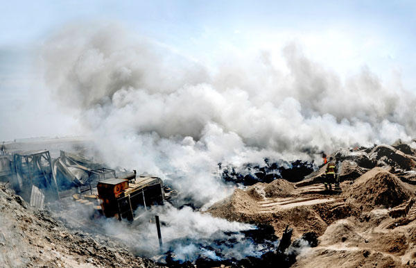 ردم الموقع لإخماد النيران والاستعانة بالحرس الوطني وشركة نفط الكويت والبلدية