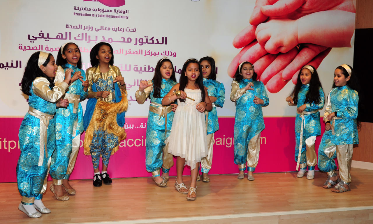 دشن وزير الصحة الدكتور محمد الهيفي اليوم الحملة الوطنية لتطعيم أطفال الصف الثاني - رياض أطفال ضد ميكروب (النيموكوكل).