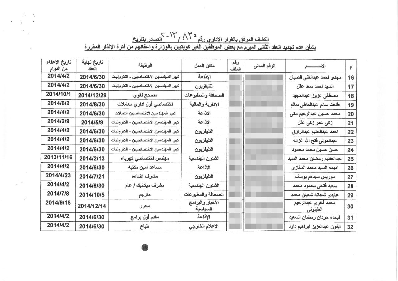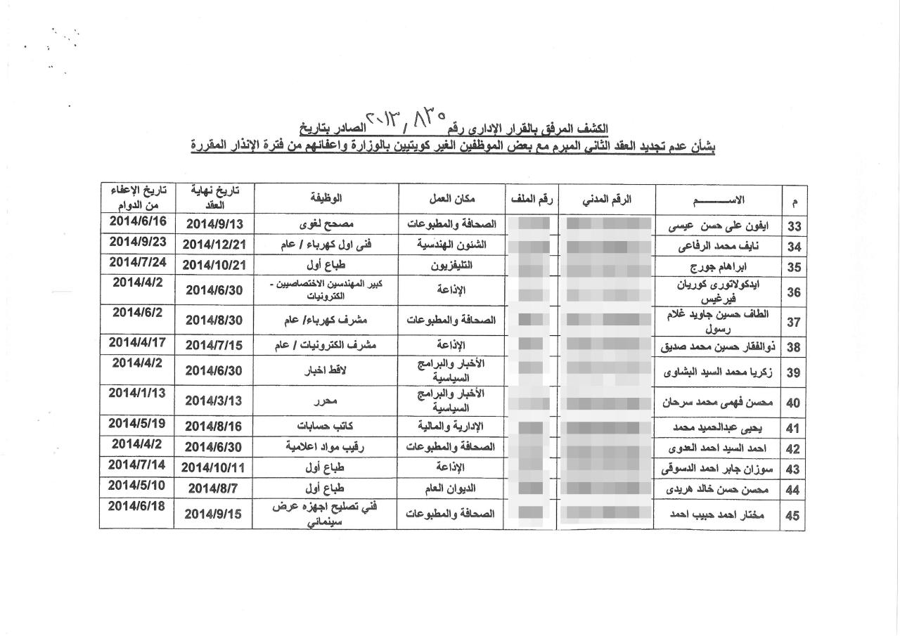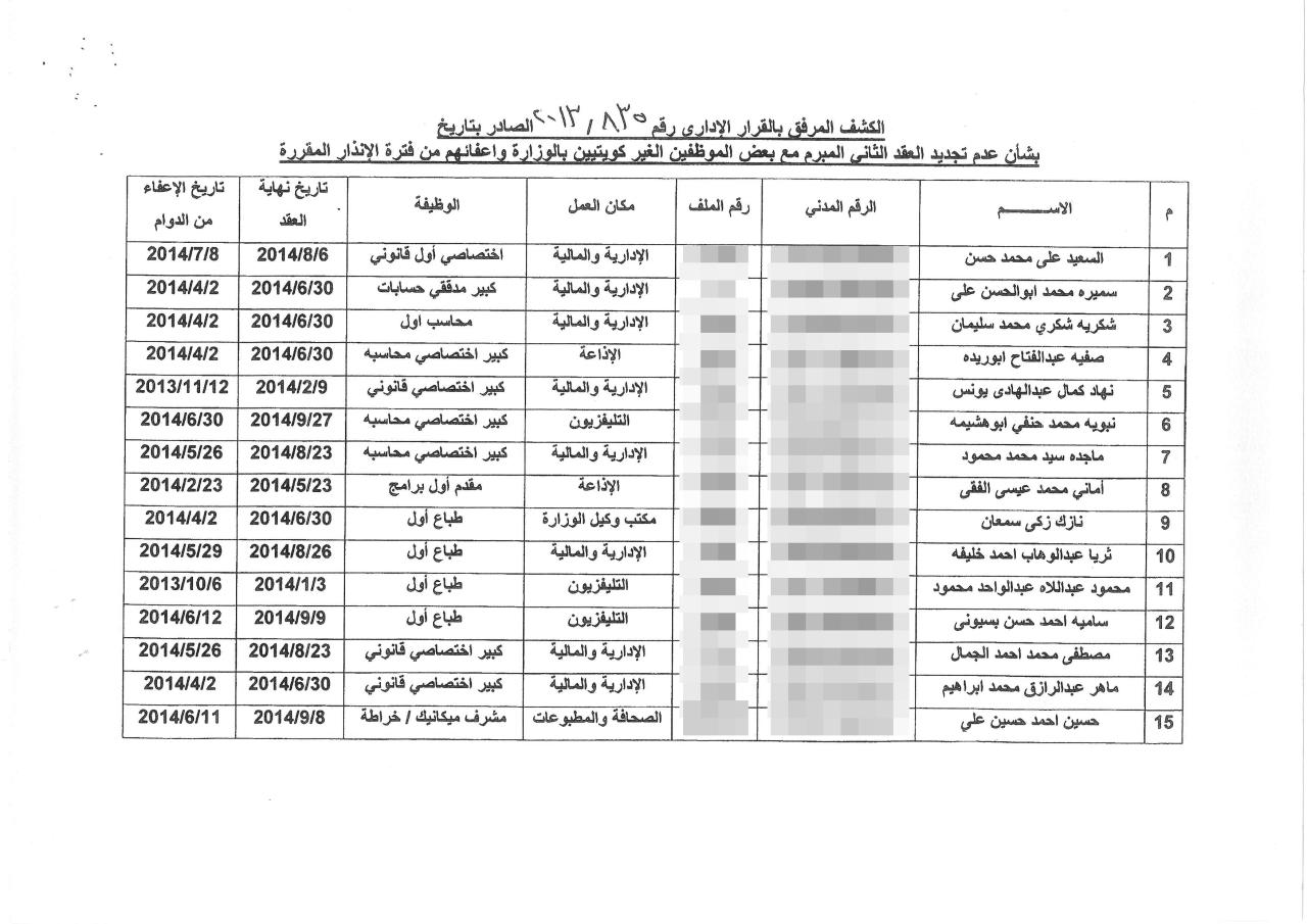 "الإعلام" تنهي خدمات 106 موظفين غير كويتيين