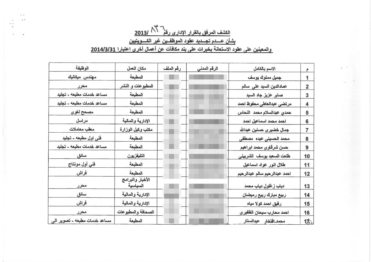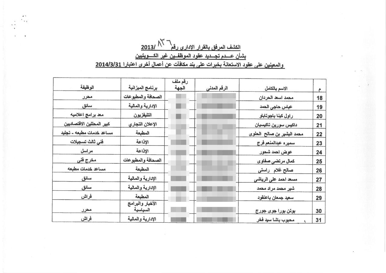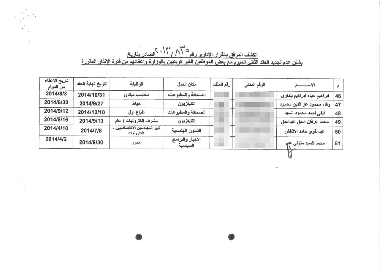"الإعلام" تنهي خدمات 106 موظفين غير كويتيين
