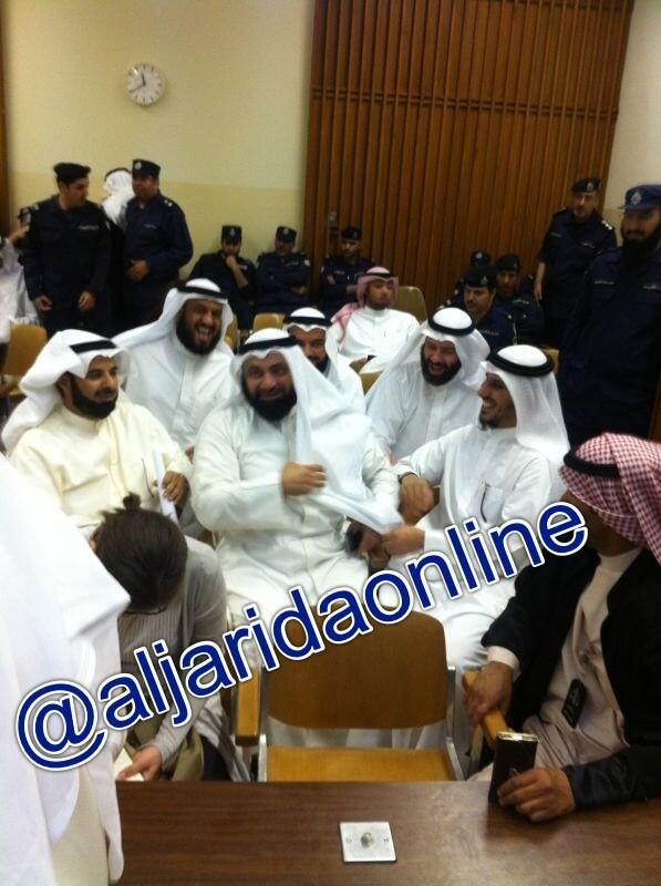 ومع دخول القاضي أنور العنزي إلى القاعة سأل عن البراك والذي رد بدوره بأنه موجود، وقال البراك قبل الجلسة لـ "الجريدة" بانه متفائل خير، ووجه القاضي تهمة المساس بالذات الاميرية والطعن بمسند الامارة.. والبراك يرد: هذه التهم غير صحيحة.وترافع المحامي محمد الجاسم عن البراك متحدثا عن أن حكم حبس البراك باطلاً بطلان مطلق والمحكمة ارتكبت خطأ فادح دون ندب محامي، مبينا بأن أحكام التمييز الكويتية والمصرية تؤكد بطلان حكم أول درجة بحبس البراك لعدم ندب محامي له مضيفا بأنه ومنذ ٤٠ سنة وقضاء محكمة التمييز الكويتي يؤكد على ضرورة حضور محامي مع المتهم فحق الدفاع مقدس. وقال الجاسم "كانو يريدون اغتيال البراك عند اقتحام ديوانه وليس اعتقاله، ضابط القوات الخاصة قال لدى دخوله المنزل "عندي أوامر بقتل 5".بدوره، قال المحامي دوخي الحصبان بأن حكم أول درجة باطل، وعلى فرض أن المحامين أخطأو، فما هو ذنب المتهم؟، مضيفا بأنها لن تقوم القيامة اذا أخلي سبيل البراك، وهل ضريبة عدم اخلاء السبيل يستحق واترك باقي العبارات للمحكمة، ليتحدث بعده النائب السابق والمحامي مبدياً استغرابه من انتهاك الكرامات بعد ٥٠ سنة من الدستور، مضيفا "للأسف هناك أجهزة في الدولة تقوم على الولاءات".وأشار الجري إلى أن أفعال القوات الخاصة بمنزل أسرة البراك خرق للدستور والقانون.وأصر دفاع المتهم على وقف تنفيذ الحكم وقف تنفيذ حكم حبس البراك للاطلاع والاستعداد وعلى طلباته المثارة امام محكمة اول درجة باستدعاء ضابط امن الدولة العصفور ورئيس الوزراء وأحمد الديين، وهو الأمر الذي أكدت المحكمة بأنها ستدرس هذه الطلبات فإن كان لها مستحق ستستجيب وان كانت غير مستحقه فلن تستجيب لها.وبعد رفع الجلسة لتداول القضية من قبل القاضي، تحدث مسلم البراك مع ممثلي منظمة "هيومين رايتس ووتش" في القاعة، مؤكدا بأن الدستور نظّم له حق الحديث.