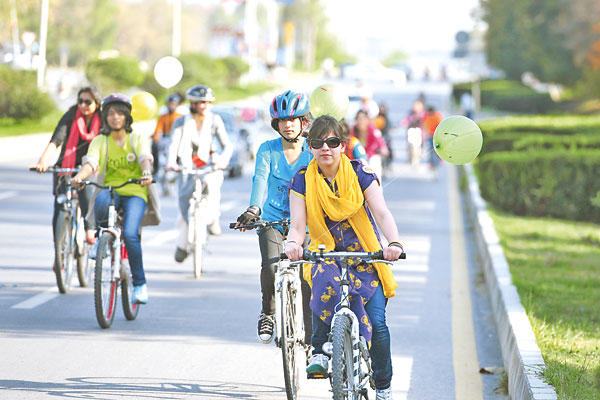 ليس من المألوف رؤية امرأة على دراجة هوائية في باكستان، وفي مسعى إلى كسر هذه الصور النمطية، جابت نحو 20 امرأة شوارع اسلام اباد الجمعة، احتفاء باليوم العالمي للمرأة.وقالت مسوري علي البالغة من العمر 30 عاما إنه "نشاط بسيط، لكننا أردنا أن نظهر ان المرأة تتمتع بالحق في ركوب دراجة هوائية"، فالمجتمع الباكستاني لا يتقبل أن تزاول المرأة هذا النشاط.