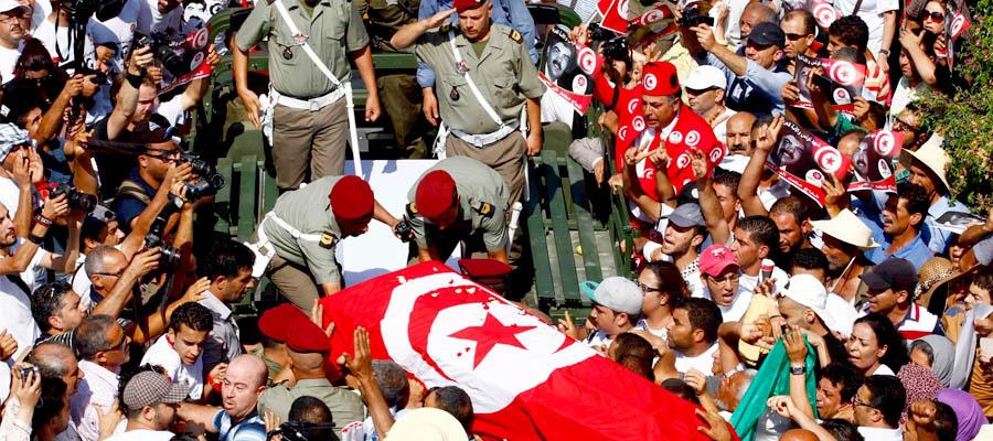 وسط دعوات لاسقاط حكومة الترويكا خرج الاف التونسيين يوم السبت للمشاركة في تشييع جثمان المعارض محمد البراهمي الذي اغتيل الخميس الماضي بالرصاص.وخرجت الجنازة التي شارك فيها الالاف من منزل البراهمي في حي الغزالة وقد وضع جثمانه وضع على سيارة عسكرية مكشوفة ستتوجه نحو مقبرة الجلاز. الموكب توقف في ساحة حقوق الانسان حيث انضم الاف اخرون للموكب.