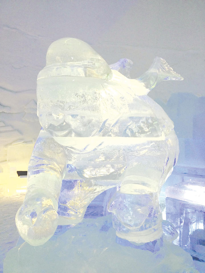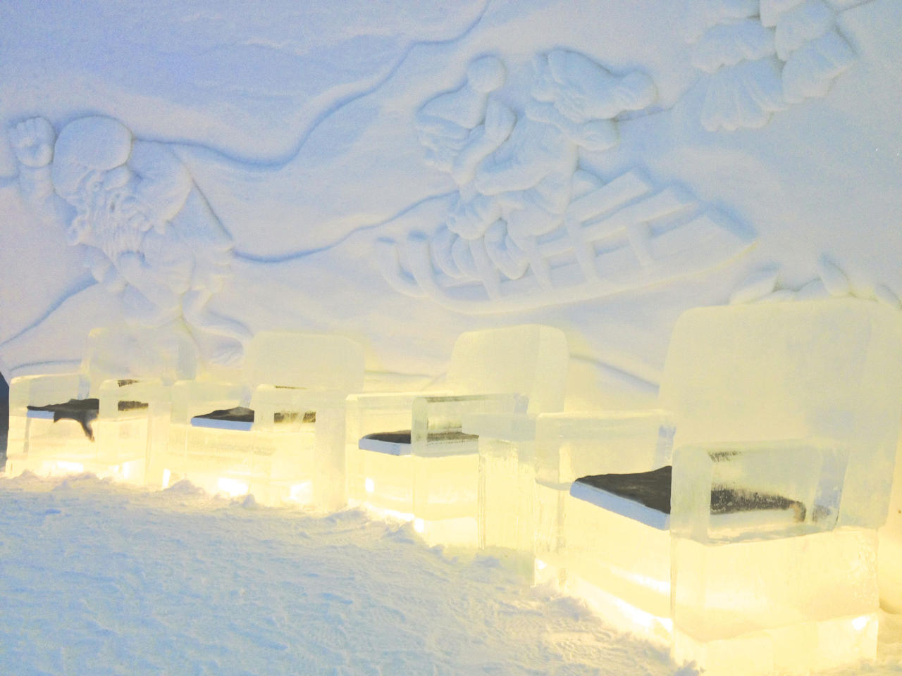 على غرار الفنادق النرويجية الجيدة كافة، يتولى تقديم المشروبات شاب رشيق يطيل لحيته ويعتمر قبعة صوفية. لكن الاختلاف الوحيد أن الفندق يقع على خط عرض 70 درجةً شمالاً على بعد بضعة كيلومترات من الحدود الروسية-النرويجية. وقد نُحت المشرب من كتل كبيرة من الجليد. وعند طرفه انتصب تمثال كبير من الجليد على شكل «ترول»، ما يذّكر بالقصص الخرافية النرويجية.في مستهل المساء، وصلتُ برفقة 20 نزيلاً إلى الفندق، ورحنا نتلفت حولنا ونظراتنا فيها مزيج من الحماسة والقلق. في الوقت المناسب، قدّم النادل للجميع عصير الكروبيري في أكواب زجاجية مثلجة.