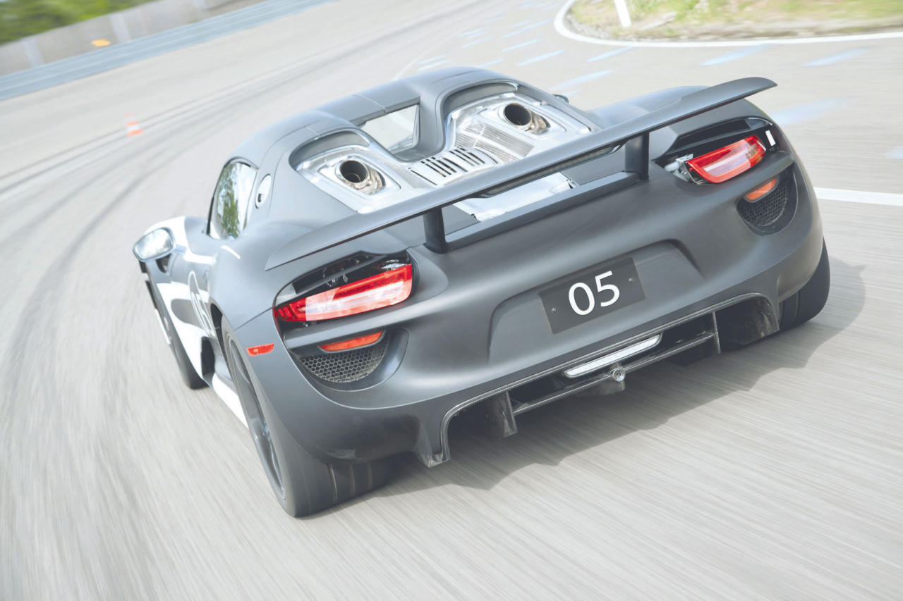 تأتي سيارة «918 سبايدر» تجسيداً لمفهوم الشركة للسيارات الرياضية الخارقة ذات الأداء المستقبلي، وتعتبر أول سيارة سباق فائقة «الدفع المختلط الرياضي» Sport Hybrid. صممت السيارة لتقدم أداءً عالياً من خلال وحدة المحرك الكهربائي، وسيتم تصنيعها بشكل محدود يبلغ 918 سيارة فقط عالمياً، تحمل كل منها رقماً فردياً مع بدء الإنتاج في خريف العام الحالي.وتنطلق «918 سبايدر» بالتسارع من صفر إلى 100 كلم/س في زمن يقل عن ثلاث ثوانٍ للوصول إلى سرعتها القصوى البالغة 325 كلم في الساعة، بينما تبلغ سرعتها بالاعتماد الكامل على المحرك الكهربائي 150 كلم في الساعة. وساعدت تلك المزايا سيارة «918 سبايدر» في اجتياز حلبة «نوربورغرينغ نوردشلايفه» التي يفوق طولها 20 كيلومتراً في وقت قياسي بلغ 7:14 دقائق. وفي ظروف القيادة الاقتصادية يبلغ معدّل الاستهلاك للوقود نحو 3 ليترات/100 كلم، مع إمكانية اجتياز مسافة تزيد على 25 كلم على الطاقة الكهربائية وحدها.