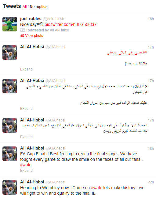 فرض حارس منتخب عمان ونادي ويغان الإنكليزي علي الحبسي نفسه كأحد أفضل المحترفين العرب في أوروبا، بعد أن قاد فريقه إلى نهائي بطولة كأس إنكلترا لكرة القدم.