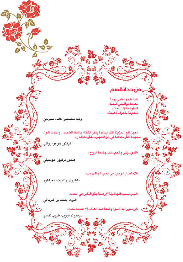 لا أحد معصوم عن الحب! ولا أحد يعرف متى يطرق الحبّ باب قلبه! فقد تصيبك سهامه فجأة فتعلق في شباكه فوراً، وقد ينمو في صدرك رويداً رويداً إلى أن تكتشف أنه اكتسح فؤادك ولم يترك فيه زاوية مستقرّة.