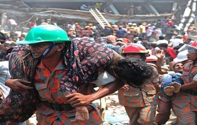قتل 82 شخصا على الاقل واصيب 700 اخرون في انهيار مبنى مؤلف من ثمانية طوابق يضم العديد من مصانع الملابس يعمل فيها الالاف على مشارف العاصمة الاربعاء، ويخشى من ارتفاع عدد القتلى.ولم يتبق سوى الطابق الارضي من مبنى "رنا بلازا" الواقع في بلدة سافار الذي انهار في الساعة 9,00 (03,00 تغ).