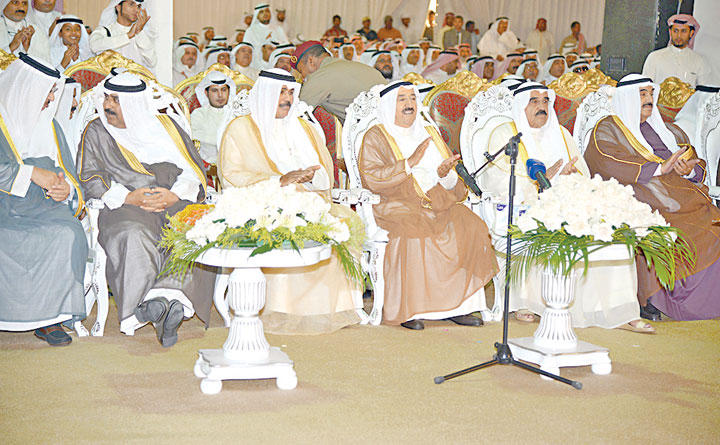 " بسم الله الرحمن الرحيم الحمد لله رب العالمين والصلاة والسلام على أشرف المرسلين نبينا محمد وعلى آله وأصحابه أجمعين.الأخ الكريم مسلط زبن الهذال الاخوة الكرام اخواني وأبناء وطني السلام عليكم ورحمة الله وبركاته. لقد سعدت كثيرا بلقائي بأبنائي وإخواني من شعبنا الكريم في مناطق مختلفة في البلاد، وها نحن اليوم نلتقي بكم مجددا على مائدة الأخ مسلط زبن الهذال لقاء مودة ومحبة في اطار نهجنا المعهود بالتواصل وتبادل الزيارات شاكرا له هذه الدعوة الكريمة.إن لقاءاتنا وزياراتنا هذه عادة طيبة وسمة حميدة توارثناها من الآباء والاجداد، وسنورثها للابناء جيلا بعد جيل، وسنظل بعون الله تعالى محافظين عليها ومتمسكين بها في اطار قيمنا وروح الاسرة الكويتية الواحدة.إخواني وأبناء وطني، إن طموحاتنا كبيرة نحو تحقيق المزيد من الانجازات وتنفيذ خطط التنمية بمختلف مرافق الدولة لكي نحقق لشعبنا ما يستحقه من عيش كريم ورفاه، وهو ما يتطلب من الجميع التعاون المخلص والعمل الجاد والتفاني في خدمة الوطن العزيز لبلوغ هذه الاهداف.ان وطننا العزيز أمانة في أعناقنا جميعا تتطلب منا المحافظة عليه والذود عنه والعمل على النهوض به ورقيه وازدهاره والحفاظ على وحدته الوطنية والتمسك بها.إخواني وابناء وطني، اننا لن نحيد مطلقا عن خيارنا الذي اخترناه والنهج الذي سلكناه في المحافظة على نظامنا الديمقراطي، الذي نفخر به، والتمسك بالدستور وتكريس دولة القانون والمؤسسات واحترام القضاء ودعم سلطاته والتطبيق الحازم للقانون وبسط هيبته.أجدد شكري للأخ مسلط زبن الهذال على دعوته المقدرة، وأشيد بهذا اللقاء الذي نأمل أن يتجدد دائما وأسأل المولى جل وعلا أن يحفظ وطننا العزيز ويديم عليه نعمة الامن والرخاء والازدهار ويوفق الجميع لخدمته ورفع رايته.والسلام عليكم ورحمة الله وبركاته".وتطرق صاحب السمو خلال كلمته إلى حدث تاريخي مع محروت بن هذال منذ 50 عاما فقال "إخواني وأبناء وطني سأقف في كلمتي وأقول شيئا من الماضي، وهو أنه منذ خمسين عاما كنا في بغداد، وكنت أنا والشيخ عبدالله السالم والشيخ جابر رحمهما الله، وقد زارنا حينئذ محروت بن هذال وبعد فترة من جلوسه عندنا أتى إلينا الملك فيصل وعبدالإله وإلى الآن لم أنس هذا الموقف منذ خمسين عاما.والتفت إلينا الشيخ عبدالله السالم وقال يا جابر ويا صباح أذكركما بأنه لا يستطيع أحد التقول علينا في العالم إلا شخص واحد وهو محروت بن هذال، وأنا بينكم الآن وهؤلاء أحفاده وأبناؤه موجودون". كلمة الهذالبدوره، ألقى مسلط زبن الهذال كلمة رحب في مستهلها بزيارة الامير وابناء الاسرة قائلا: "إن القلب ليفرح وإن النفس لتبتهج بهذه الزيارة المباركة التي شرفت بها اخوانك وابناءك من قبيلة عنزة، جريا على عادتك السامية في التواصل مع جميع اطياف المجتمع الكويتي بقبائله وعائلاته بحضره وبدوه بسنته وشيعته".واضاف الهذال: "يا صاحب السمو حللت اهلا ووطئت سهلا، وترحب بك القلوب قبل الالسن والارواح قبل الاجساد من قبيلتك وابناء عمومتك عنزة، هذه القبيلة العريقة الراقية في حلمها وكرامتها وجودها وشجاعتها منذ ايام العرب الاولى بمعركة ذي قار الشهيرة، مرورا بالفتوحات الاسلامية المباركة، وانتهاء الى واقع شاطئنا المعاصر، بولائها لحكامها وارضها وصدقها في النصيحة وحب الوطن".وتابع: "يا صاحب السمو اننا نقتنص هذه الفرصة السعيدة لنذكر اخوانا لنا من اهل هذه الدار شاركوا الكويت افراحها واحزانها، وبذلوا الغالي والنفيس دفاعا عنها، وهم اخواننا (البدون) من القبائل والعائلات الاصيلة، ممن ينتظرون من سموك كلمة تنهي ما هم فيه وسموك اهل للعطاء ومنبع الوفاء. وان كان هناك من ابناء الكويت من اجتهد فأخطأ، ثم ابدى ندمه، فحلم سموك بحر هادر، وعفوك محيط زاخر".بعد ذلك قام احد الحضور بالطلب من سموه بحل قضية غير محددي الجنسية.شخصياتوأعربت شخصيات عدة عن الاعتزاز بمواقف صاحب السمو، وأكدت في تصريحات صحافية متفرقة عقب المأدبة أن هذه اللقاءات ليست بغريبة على سمو أم
