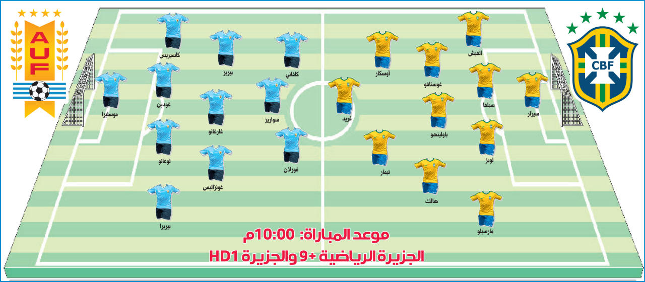 يسعى المنتخب البرازيلي الى مواصلة عروضه القوية وتحقيق الفوز على الأوروغواي عندما يتواجهان اليوم في نصف نهائي بطولة كأس القارات لكرة القدم.