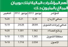 أعلن بنك بوبيان تحقيق صافي ربح خلال النصف الأول من عام 2013 قدره 6.3 ملايين دينار كويتي بزيادة 20 في المئة عن ذات الفترة من العام الماضي بربحية سهم بلغت 3.4 فلوس. وقال رئيس مجلس الإدارة محمود يوسف الفليج "ان ما تحقق في النصف الأول يعتبر استمرارا لمسيرة البنك الناجحة منذ عام 2010 والتي بدأ فيها البنك تنفيذ استراتيجيته الجديدة والعودة إلى أساسيات العمل المصرفي مما مكنه من العودة مرة أخرى للربحية وتوزيع الأرباح على المساهمين". واشار الفليج إلى نجاح البنك في تحقيق كثير من الأهداف الخاصة باستراتيجيته التي وضعها للفترة من 2010 إلى 2014 والتي تعتمد على توسيع قاعدة الأعمال والاعتماد على الأنشطة المصرفية بما تشملها من خدمات ومنتجات وحلول تمويلية تلبي كافة احتياجات الأفراد والشركات مع التأكد من المحافظة على جودة الأصول وفاعلية سياسة إدارة المخاطر الائتمانية ومواصلة السياسة المتحفظة في بناء المخصصات. مؤشرات إيجابية من جانبه استعرض نائب رئيس مجلس الإدارة الرئيس التنفيذي عادل عبدالوهاب الماجد عددا من أهم المؤشرات الإيجابية في النتائج المالية للبنك مؤكدا ان ابرز ما تحقق كان في اصول البنك التى تجاوزت حاجز الملياري دينار لاول مرة في تاريخ البنك بنسبة نمو 19 في المئة عن نفس الفترة من العام الماضي وهو الامر الذي ما كان ليتحقق لولا الجهود التى بذلها جميع العاملين في البنك. واضاف الماجد ان من المؤشرات الايجابية ايضا زيادة صافي إيرادات التمويل لتصل إلى حوالي 28.8 مليون دينار كويتي بنهاية النصف الأول من العام الحالي مقارنة مع 24.3 مليون دينار كويتي لنفس الفترة من عام 2012 وبنسبة نمو قدرها 19 في المئة، بالإضافة إلى زيادة ودائع العملاء إلى حوالي 1.6 مليار دينار كويتي مقارنة مع 1.3 مليار دينار كويتي بنسبة نمو قدرها 20 في المئة، كما ارتفع إجمالي قيمة حقوق الملكية في البنك ليصل إلى 261 مليون دينار كويتي مقارنة مع 250 مليون دينار كويتي والذي ترتب عليه أن بلغ معدل كفاية رأس مال البنك 23 في المئة. وأضاف أن من المؤشرات الإيجابية أيضا ارتفاع محفظة التمويل إلى 1.4 مليار دينار كويتي مقارنة مع 1.2 مليار دينار كويتي بنهاية يونيو من العام الماضي وبنسبة نمو 18 في المئة إلى جانب الارتفاع المتواصل لقاعدة عملاء البنك. الاستراتيجية الخمسية من ناحية أخرى أكد الماجد أن البنك مستمر في تنفيذ استراتيجيته الخمسية (2010 - 2014) والتي مضى منها حوالي 3 سنوات والتي تعتمد على التوسع في السوق المحلي من خلال الخدمات والمنتجات الموجهة للأفراد والشركات، وخلال العامين الحالي والمقبل فانه مستمر في تنفيذ هذه الاستراتيجية بمشيئة الله. وأضاف: "نحن متفائلون بالمستقبل انطلاقا من قدرتنا على المنافسة إلى جانب وجودنا ضمن مجموعة بنك الكويت الوطني بالإضافة إلى تفاؤلنا بتحسن الأوضاع المحلية والإقليمية إن شاء الله". تقدير إقليمي وعالمي أشار الماجد إلى ما حققه البنك خلال النصف الأول من هذا العام من إنجازات مميزة بحصوله على 10 جوائز إقليمية وعالمية ابرزها جائزة افضل بنك اسلامي صاعد من مجلة غلوبل فاينانس العالمية الى جانب جائزة أفضل بنك إسلامي في الكويت لخدمة العملاء للعام الثالث على التوالي من مؤسسة سيرفس هيرو وجائزة اسرع البنوك نموا من مجلة بانكر الشرق الاوسط للعام الثاني على التوالي وجائزة أفضل بنك كويتي في المسؤولية الاجتماعية من أكاديمية تتويج، وجائزة أفضل صندوق إسلامي من بانكر ميدل ايست.