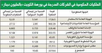 3.32 مليارات دينار القيمة السوقية للاستثمارات الحكومية