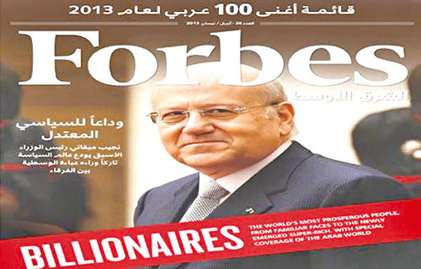 وأشارت «فوربس» إلى أن السعودية ومصر ولبنان والإمارات والكويت جاءت في مقدمة الدول التي ينتمي إليها أغنى هؤلاء الأثرياء العرب، كما تأتي هذه القائمة لتكون المؤشر المعتمد لرصد الثروات وخارطة توزعها، وأهم القطاعات الاقتصادية التي تمولها.وتربعت السعودية على عرش قائمة الأثرياء العرب، إذ بلغ عدد السعوديين منهم 41 ثريا، على رأسهم الأمير الوليد بن طلال بثروة تبلغ 20 مليار دولار، فيما احتل محمد العمودي المرتبة الـ3 بثروة قدرت بـ13.5 مليار دولار.أسماء جديدةوشهدت القائمة دخول العديد من الأسماء الجديدة منها: الأمير سلطان بن محمد بن سعود في المرتبة الـ12 بثروة قدرها 2.6 مليار دولار، وعبدالله عبدالعزيز الراجحي بـ2.2 مليار دولار في المرتبة الـ18، وأبناء عبدالقادر المهيدب بمليار دولار في المرتبة الـ41، وخالد عبدالرحمن صالح الراجحي بـ464.4 مليون دولار، وصالح كامل بـ 1.95 مليار دولار، ثم أبناء راشد عبدالرحمن الراشد بـ1.3 مليار دولار.واحتلت لبنان المرتبة الثانية بعد السعودية بـ8 أسماء، إذ جاء جوزيف صفرا في المرتبة الثانية بمبلغ قدره 15.9 مليار دولار، يليه في المرتبة الـ8 نجيب ميقاتي بـ3.5 مليارات دولار، وبهاء الحريري في المرتبة الـ15 بثروة تبلغ 2.4 مليار دولار.أما مصر فكان حضورها ممثلا بـ13 شخصية، وبثروة تبلغ 9 مليارات دولار لعائلة سويرس، تليها عائلة منصور بـ6.15 مليارات دولار، وأخيرا محمد الفايد بثروة تقدر بـ1.4 مليار دولار.واحتلت الإمارات المركز الـ7 عربيا من حيث عدد أصحاب المليارات بثلاثة أسماء، هم ماجد الفطيم الذي قدرت ثروته بـ3.6 مليارات دولار، يليه عبدالله بن أحمد الغرير وعائلته بـ3.1 مليارات دولار، أما الثالث الذي احتل المرتبة الـ28 فهو عبدالله الفطيم، بثروة قدرت بـ1.65 مليار دولار. أثرياء مجهولونوقالت رئيسة تحرير «فوربس- الشرق الأوسط» خلود العميان إن هناك أثرياء عربا يعلنون عن ثرواتهم بل يتفاخرون أيضا عند تصريحهم عنها، لكن هناك عددا كبيرا من الأثرياء يرفضون الإفصاح عن حجم ثرواتهم ويخشون الحديث عنها أحيانا، لذلك اعتمدنا حاجز 100 مليون دولار كحد أدنى لحجم الثروة، بالاعتماد على حسابات القيمة السوقية الصافية للأسهم التي يمتلكها الأفراد والعائلات في الشركات المساهمة العامة، والمدرجة في سوق الأوراق المالية في أنحاء العالم العربي لشهر مارس 2013.وأوضحت أن قائمة «فوربس-الشرق الأوسط» شهدت وجوها مألوفة هذه المرة، وأخرى جديدة من كبار رجال الأعمال وأهل الخير وكبار العائلات، ولم نبحث في مقدار ثرواتهم فقط، بقدر ما بحثنا عن إنجازاتهم التي نفخر بها على مستوى العالم، لتكون قصصها ملهمة لنا جميعا.وقالت «فوربس-الشرق الأوسط» إنها تنشر هذه القائمة من أجل استعراض جزء من أهم التحديات التي مر بها أثرياء العرب، ونقل قصص نجاحاتهم إلى القراء.وجوه سعوديةواستطاعت وجوه سعودية الدخول لأول مرة إلى قائمة «فوربس الشرق الأوسط» للأثرياء منهم، الأمير سلطان بن محمد بن سعود في المرتبة الـ12 بثروة 2.6 مليار دولار، وعبدالله عبد العزيز الراجحي 2.2 مليار دولار في المرتبة الـ18، وأبناء عبدالقادر المهيدب بثروة قدرها مليار دولار، وصالح كامل بـ1.95 مليار دولار، ثم أبناء راشد عبدالرحمن الراشد بـ1.3 مليار دولار، إضافة إلى خالد عبدالرحمن صالح الراجحي بـ464.4 مليون دولار.وحول أغنى 10 أثرياء عرب، أظهرت القائمة أن الأمير السعودي الوليد بن طلال جاء في المقدمة بثروة تبلغ 20 مليار دولار، تلاه الملياردير اللبناني الأصل جوزيف صفرا الذي يعمل في مجال البنوك بثروة تقدر بـ 15.9 مليار دولار، فيما احتل المستثمر السعودي في قطاع النفط محمد العمودي المرتبة الثالثة بثروة قدرها 13.5 مليار دولار.وفي المركز الرابع جاء السعودي محمد بن عيسى الجابر بثروة تبلغ 7 مليارات دولار، جمعها من العمل في قطاعي العقار والفنادق، ثم المصري ناصف ساويرس بـ 6.5 مليارات دولار، تلاه المستثمر السعودي في القطاع المصرفي سليمان الراجحي وعائلته بثروة قيمتها 6 مليارات دولار.وجاء في المر