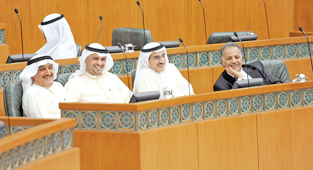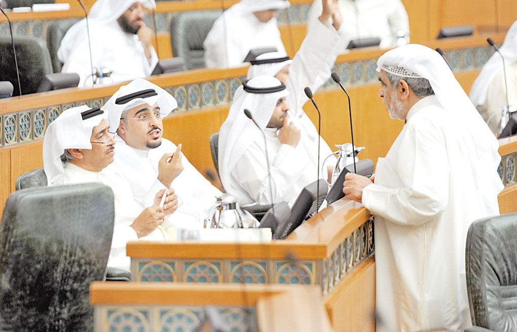 المجلس يحيل تقرير «ترقيات النفط» إلى الحكومة والقلاف يلوّح بمساءلة المبارك إذا لم ينفذأقر مجلس الأمة في جلسته أمس زيادة العلاوة الاجتماعية للاولاد الى 75 دينارا على ان تصرف لسبعة اولاد في المداولتين الاولى والثانية واحاله الى الحكومة، رغم تحذيرات وزيرة الدولة لشؤون مجلس الأمة رولا دشتي من خطورة نتائج القوانين التي يقرها المجلس ذات الكلفة المالية العالية، والتي ستؤدي الى حدوث عجز حقيقي في الميزانية عام 2021 يقدر بـ 51 مليون دينار.ووافق المجلس في المداولة الثانية، بعد اجراء عدد من التعديلات، على قانون هيئة الاتصالات وتقنية المعلومات، بينما اكتفى بإقرار قانون التشريعات الالكترونية في مداولة واحدة على ان تقر المداولة الثانية في جلسة الثلاثاء المقبل، وسط مطالبة نيابية بالإسراع في تنفيذ القانون.وناقش المجلس خلال ساعة قرار تحويل بعض القياديين الى التقاعد بعد مضي 30 سنة، وانتهت باقرار توصيات عدة دعت الحكومة إلى إعداد تقرير عن إجراءاتها بشأن الاحالة القسرية الى التقاعد مع بيان المبررات.وكان المجلس وافق على إحالة تقرير لجنة العرائض والشكاوى بشأن ترقيات وتعيينات النفط الأخيرة إلى الحكومة الذي أوصى بإلغاء تعميم ترقيات النفط، وشهدت الجلسة تلويحاً بنقل الاتهام الى رئيس الوزراء في حال لم تقم الحكومة بتنفيذ ما جاء في التقرير.واعتمد المجلس تقرير لجنة الميزانيات والحساب الختامي عن 82 مشروعا بقانون بشأن الحسابات الختامية للوزارات والادارات الحكومية والهيئات ذات الميزانيات الملحقة والمؤسسات المستقلة عن السنوات من 1999-2000 الى 2010-2011، وأحال توصيات اللجنة وملاحظات ديوان المحاسبة عليها الى الحكومة.افتتح رئيس مجلس الأمة علي الراشد الجلسة في الساعة التاسعة، وتلا الامين العام اسماء الحضور والمعتذرين.وقال الراشد: «باسم المجلس أود ان اشكر اللجنة التشريعية والاخ يعقوب الصانع على ما بذلوه من جهود جبارة لعقد مؤتمر التشريعات الالكترونية والدفع نحو انجاحه».وشاطرت الوزيرة رولا دشتي باسم الحكومة المجلس الشكر للجنة التشريعية.وتلا الامين العام طلبا نيابيا بشأن مناقشة تقرير العرائض والشكاوى حول قرار الترقيات الاخيرة في القطاع النفطي.ونبه الراشد الأمين العام الى ان «هذا الموضوع ليس المقرر مناقشته حسب قرار امس (امس الاول)، انما مقرر مناقشة موضوع تقاعد القياديين».وقالت رولا: «أتمنى تأجيل ترقيات النفط لحين حضور وزير النفط»، وتمت الموافقة.وتلا الامين العام طلب مناقشة احالة القياديين الى التقاعد بعد مرور 30 سنة.وقال النائب صالح عاشور «قدمنا طلب تقديم مناقشة علاوة الاولاد وزيادة القرض الاسكاني وبدل الايجار ولم يتم أخذ الموافقة عليه».وبين الراشد عدم وجود نصاب الان حتى يصوت على الطلب.من جهته قال النائب يعقوب الصانع «انا ضد اقرار القوانين ذات الكلفة المالية التي لم تدرس بشكل جيد، لكن مع اعطاء الفئة المستحقة حقوقها»، مشددا على أن «الاطفائيين يستحقون مساواتهم بالعسكريين، ولا يمكن بأي حال ألا نعتبر الاطفائيين من العسكريين».وأكد الصانع وجود شبهة دستورية في قرار احالة القياديين للتقاعد بعد 30 سنة، وتشرفت بلقاء رئيس الوزراء بهذا الخصوص، وقدمت له دراسة تتعلق بالفصل القسري.أكبر شريحةوفي السياق شدد النائب خالد الشليمي على أن اكبر شريحة متضررة في الكويت هي شريحة المتقاعدين، وزيادة معاشهم اصبحت أمرا واجبا، متسائلا: «هل الحكومة اعدت الكوادر اللازمة لادارة ميناء مبارك؟ وموضوع اطلاق القمر الصناعي هل خلقت فرص العمل اللازمة لذلك»، وفي نقطة نظام اعترض النائب عادل الخرافي على عدم تقديم الحكومة بيانا تشرح خلاله رأيها في الموضوع.وأبدى النائب عبدالحميد دشتي استغرابه من كيل الحكومة بمكيالين فلم تنفذ قرار معاملة الاطفائيين معاملة العسكريين بينما نفذت قرارات مماثلة لجهات اخرى، مشددا على ضرورة إصدار توصية بمعاملة الاطفائيين ومعاملتهم معاملة العسكريين.وطالب النائب صالح عاشور بايقاف المستشارين ف