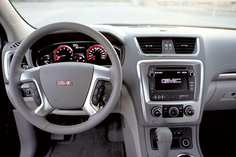 ويتصل محرك أكاديا سعة 3.6 لترات بناقل حركة من 6 سرعات أوتوماتيكية Hydra-Matic 6T75، ويحتوي على تقنية نقل حركة متطورة وعملية تعشيق للسيارات المجهزة بنظام الدفع الأمامي أو الدفع الرباعي المتواصل، كما أنه يوفر فرملة تدريجية أوتوماتيكية، وتحكّما دقيقا ومستقرا بالتعشيق، إضافة إلى النظام المساعد على الانطلاق في المرتفعات.دفع رباعيويوفر نظام الدفع الرباعي المتواصل الذكي المزيد من الثبات على الطرقات الزلقة عبر تفعيل إدارة وتوزيع العزم بين المحورين الأمامي والخلفي، استناداً إلى عوامل معينة كسرعة العجلات ونسبة الضغط على دواسة الوقود، وحالة السطح الذي تسير عليه المركبة، من دون أي تدخل من قبل السائق، حيث يقوم النظام أوتوماتيكياً بتقرير كمية العزم التي يتوجب عليه إرسالها إلى العجلات التي تتمتع بأكبر قدر من التماسك.وتتمتّع أكاديا 2013 بشبكة تهوئة جديدة مصقولة وثلاثية القضبان تبرز في تصميم أكثر ارتفاعاً، بينما يمنحها توزيع مصابيح LED مظهراً راقياً. وهذه التجهيزات قياسية على كل الطرازات، بما فيها المصابيح الأمامية الكاشفة والمصابيح المقاومة للضباب. ويعكس التصميم الجديد لمصباح LED في الخلف التطوّر نفسه للواجهة الأمامية. وتشمل سائر التعديلات الخارجية الزجاج الخلفي الدائري، وجناحا خلفيا جديدا.وتقدّم أكاديا أيضاً تصاميم جديدة لعجلات قياس 19 و20 إنشاً، تتكامل مع الخطوط والهيكل الخارجي التي أعيد تصميمها.وتؤمن بنية الهيكل الشاملة لركاب أكاديا حافة منخفضة للدخول أو الخروج. ولا يزيد ارتفاع حواف الأبواب الأمامية عن 480 ملم، أما حواف الأبواب الخلفية فيبلغ ارتفاعها 503 ملم. كما يسهل الدخول إلى صفي المقاعد الثاني والثالث بفضل الأبواب العريضة جداً ونظام جنرال موتورز الحصري والذكي لانزلاق صف المقاعد الثاني. داخلية... غيرتحتوي مقصورة أكاديا الداخلية على تصميم "منخفض وبعيد" للوحة العدادات شبيه بما يتوافر في السيارات، ما يعزز الشعور العام بالرحابة في صف المقاعد الأمامية، كما يوفر رؤية توحي بالسيطرة على الطريق. كما أن لوحة العدادات وغيرها من المكونات الداخلية تتميز بكونها عالية الجودة، وخفيفة اللمعان، وقليلة الفراغات.وتتوافر ثلاثة صفوف مقاعد يمكن توضيبها بشكلٍ يسمح باستيعاب سبعة أو ثمانية ركاب بغض النظر عن مستوى التجهيز المختار في كل فئات أكاديا. وتشتمل توضيبات المقاعد هذه على مقعدين حاضنين في الأمام، صف مقاعد ثان بظهر منفصل بنسبة 40/60 (يتسع لثلاثة ركاب)، أو صف من مقعدين بأذرع (يتسع لراكبين)، وصف مقاعد ثالث بظهر منفصل بنسبة 40/60.ويأتي نظام جنرال موتورز الحصري والذكي لانزلاق المقاعد قياسياً، ليسمح بدخول سريع وسهل إلى منطقة صف المقاعد الثالث. ويمكن للقسم السفلي من صف المقاعد الثاني أن ينقلب، بينما ينزلق القسم الأعلى من المقاعد باتجاه الأمام، مما يخلي المكان الذي كان يحتله الصف الثاني عبر سحب الرافعة المخصصة لذلك.وتتوافر في أكاديا مساحة تحميل تبلغ 682 لتراً خلف صف المقاعد الثالث (مع إزالة نظام ترتيب حيّز الأمتعة). أما مساحة التحميل القصوى خلف الصف الأول من المقاعد فتبلغ 1.382 لتر.انظمة مطورة زوّدت أكاديا قياسياً بنظام Color Touch من جنرال موتورز الذي يتم التحكم فيه باللمس، ويتوافر معه نظام ملاحة (قياسي على أكاديا دينالي). ويتيح نظام IntelliLink المتوافر للعملاء الدمج السلس لخدمات الإنترنت مثل نظام StitcherSmartRadio، وذلك عبر التحكم في الصوت من خلال هواتف مزوّدة بتقنية الاتصال Bluetooth.ويضيف نظام IntelliLink تدفق موسيقى الستيريو والتحكم اللاسلكي في الهواتف الذكية، ليعزز بذلك قدرات التحكم اللاسلكي والاتصال عبر Bluetooth، مع الاحتفاظ بقدرات الأنظمة الترفيهية مثل AM/FM وتشغيل الأقراص المدمجة وMP3 ومنافذ USB الإضافية.ومن مزايا النظام الصوتي الإضافية نظام عرض الصور وكاميرا الرؤية الخلفية القياسية، مع خطوط التوجيه الديناميكية التي تعرض على الشاشة عالية الوضوح.كما يوجد منفذ USB قياسي في كل الفئات، يتيح للركاب وصل أجهزتهم الموسيق