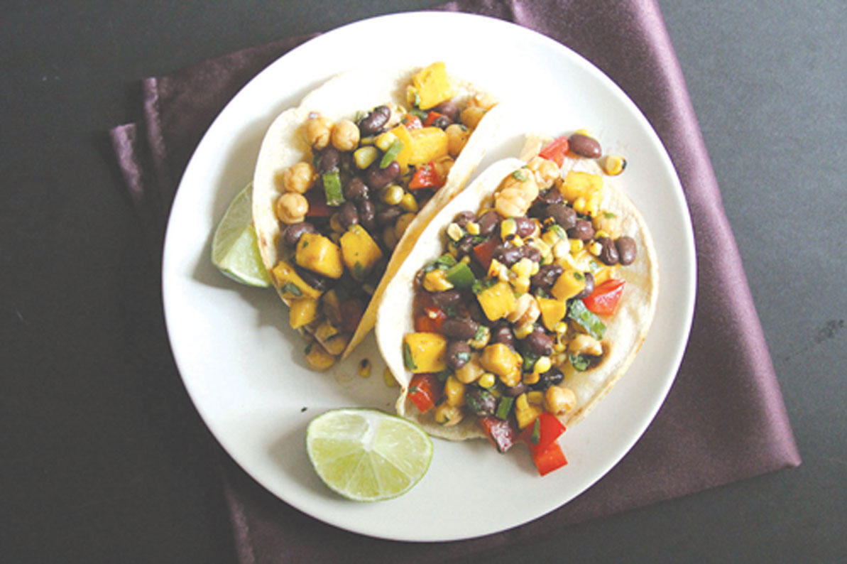 استوحينا من تلك التجارب كلها وبدأنا نحضر حشوة التاكو والصلصات التي تشمل مقادير حارة وحلوة ومالحة مستوحاة من تقاليد الطبخ المكسيكية والكورية والهندية والجنوبية. يمكن إطعام الحشود عبر ترتيب المأكولات على شكل بوفيه مع بعض الأطباق الجانبية فيما يتنقّل الضيوف لملء أطباقهم.يمكن تحضير المأدبة عبر توزيع مختلف الحشوات والصلصات وسلال الذرة الدافئة وتورتيلا الدقيق المغلّفة بمناشف المطبخ وأطباق من الخس المقرمش وورق الملفوف.أضيفي مجموعة من المقادير الجانبية للزينة مثل شرائح الليمون، والبصل المخلل، وقطع من فليفلة الجالابينو، والبصل الأخضر والفجل، والكزبرة المفرومة، والكريما الحامضة، والجبنة المكسيكية المفتّتة، بالإضافة إلى صلصة الأفوكادو، ورقائق البطاطا، وأنواع عدة من الصلصة الحارة. لتبدأ الحفلة!تاكو بالبطاطا الحلوة والفاصولياء السوداء (8 أشخاص)مدة التحضير: 10 دقائق.الوقت الإجمالي: 50 دقيقة.تُخلط النكهات الهندية في هذا التاكو النباتي. تتماشى البطاطا الحلوة والفاصولياء السوداء أيضاً مع هذه النكهات لتحضير طبق لذيذ.المقادير- 4 حبات بطاطا حلوة كبيرة ومقطعة إلى مكعبات متوسطة.- ملعقتان كبيرتان من زيت الكانولا.- ملعقة صغيرة من الملح.- فص ثوم مهروس.- نصف بصلة مقطعة إلى مكعبات صغيرة.- 4 ملاعق كبيرة من معجون التندوري.- علبة من حليب جوز الهند غير المُحلّى.- كوب ونصف الكوب من الفاصولياء السوداء (أو فاصولياء معلّبة).الطريقة1. سخني الفرن مسبقاً على حرارة 350 درجة.2. اخلطي مكعبات البطاطا الحلوة مع ملعقة كبيرة من الزيت والملح. ضعي الخليط في صينية واشويه في الفرن إلى أن يصبح ناعماً ويميل لونه إلى البني الفاتح، مدة 30 دقيقة تقريباً.3. في غضون ذلك، قلّي الثوم والبصل في مقلاة كبيرة مع الملعقة الكبيرة المتبقية من الزيت إلى أن يصبح الخليط شفافاً، مدة 3 دقائق تقريباً. أضيفي معجون التندوري واطبخي الطعام مدة دقيقة. أضيفي حليب جوز الهند ثم اسكبي الفاصولياء السوداء ودعي الخليط على حرارة متوسطة مدة 10 دقائق. أضيفي البطاطا الحلوة المشوية وأبقي الطعام دافئاً حتى يحين وقت تقديمه.في الحصة: 251 سعرة حرارية (نسبة السعرات الحرارية من الدهون: 51)، 5 غرامات من البروتينات، 27 غراماً من الكربوهيدرات، 6 غرامات من الألياف، 15 غراماً من الدهون (6 غرامات من الدهون المشبعة)، ميليغرام من الكولسترول، 503 ملغ من الصوديوم.صلصة حارة بالزنجبيل وجوز الهندالمقادير- حبة فليفلة مع نزع الجذوع والبذور.- قطعة بحجم إنش من الزنجبيل الطازج والمقشر.- كوب من رقائق جوز الهند المبروشة والمحلاة.- باقة من الكزبرة مع نزع الجذوع الكبيرة.الطريقة1. في وعاء الخلاط، اخفقي الفليفلة والزنجبيل حتى الحصول على خليط ناعم.2. أضيفي جوز الهند والكزبرة واخفقي الخليط إلى أن يمتزج جيداً.في الحصة: 35 سعرة حرارية (نسبة السعرات الحرارية من الدهون: 77)، كمية ضئيلة من البروتينات، غرامان من الكربوهيدرات، غرام من الألياف، 3 غرامات من الدهون (غرامان من الدهون المشبعة)، خالٍ من الكولسترول، 3 ملغ من الصوديوم.تاكو بالروبيان مع صلصة الذرة المشوية (8 أشخاص)مدة التحضير: 30 دقيقة.الوقت الإجمالي: ساعتان، منهما ساعة لنقع الروبيان.تجتمع مقادير الروبيان والذرة الحلوة والبصل لتحضير طبق جنوبي من التاكو الكلاسيكي.المقادير- فصا ثوم.- ربع كوب من عصير العنب.- ربع كوب من السكر الأسمر.- ملعقتان كبيرتان من الأوريغانو (من الأفضل أن يكون مكسيكياً).- 100 غرام من الفلفل الحار المعلّب.- نصف كيلو من الروبيان المقشر والمقطع.الطريقة1. في وعاء الخلاط، اخلطي الثوم وعصير العنب والسكر الأسمر والأوريغانو وعلبة الفلفل الحار والصلصة واخفقي الخليط حتى يصبح طرياً.2. في وعاء متوسط، اخلطي قطع الروبيان مع خليط الفلفل الحار. انقلي الخليط إلى البراد كي ينتقع مدة ساعة.3. سخني المشواة مسبقاً.4. مددي ورق الألمنيوم في صينية ووزعي قطع الروبيان والصلصة بشكل متساوٍ. اشويها مدة 5 دقائق تقريباً وحركيها مرة إلى أن تصبح قطع الروبي