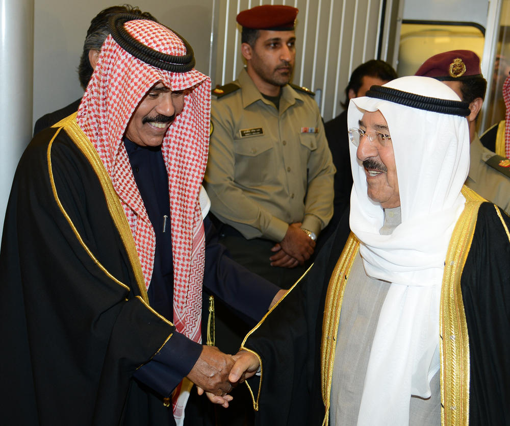 وقد كان في استقبال سموه رعاه الله على أرض المطار سمو ولي العهد الشيخ نواف الأحمد الجابر الصباح ومعالي رئيس مجلس الامة علي فهد الراشد ومعالي كبار الشيوخ وسمو الشيخ ناصر المحمد الاحمد الصباح وسمو الشيخ جابر المبارك الحمد الصباح رئيس مجلس الوزراء والوزراء وكبار المسؤولين في الدولة وكبار القادة في الجيش والشرطة والحرس الوطني.رافقت سموه السلامة في الحل والترحال.