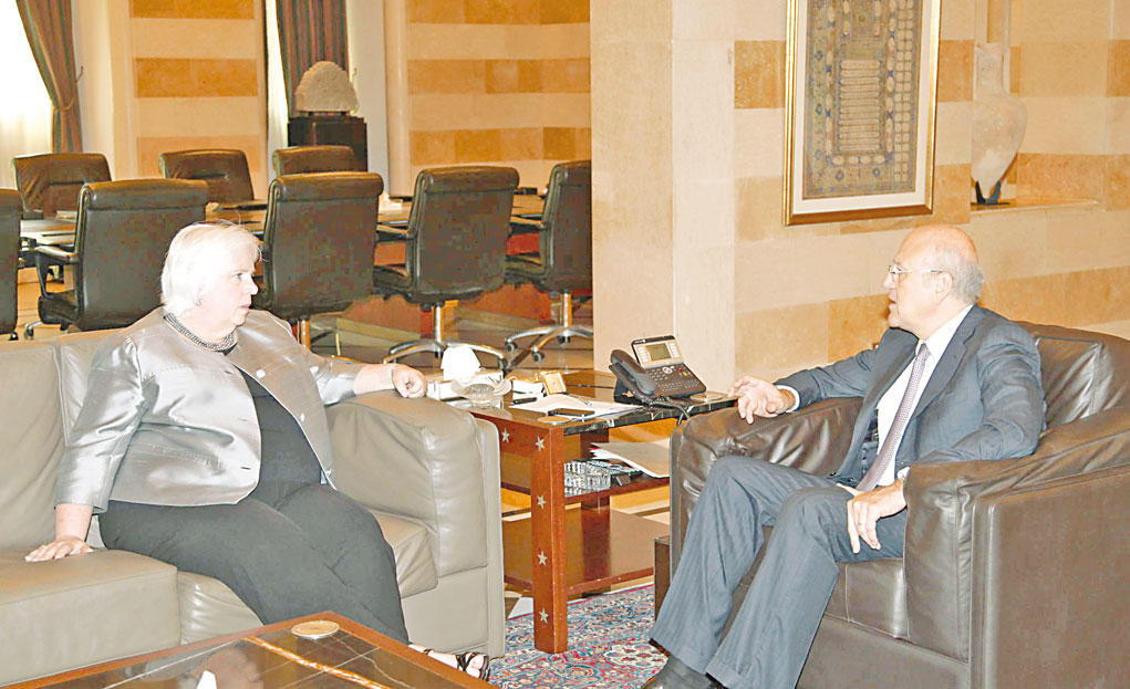 وأعلنت قيادة الجيش اللبناني في بيان أمس، أن «قوات الاحتلال الاسرائيلي انتهكت الليلة الماضية السيادة اللبنانية واخترقت دورياتها الخط الازرق لمسافة 400 متر»، لافتة الى أنه «أثناء تسلل الدورية الاسرائيلية حصل انفجار ادى الى سقوط عدد من الاصابات في صفوفهم». إلى ذلك، اعتبرت السفيرة الاميركية في لبنان مورا كونيللي بعد لقائها رئيس حكومة تصريف الاعمال نجيب ميقاتي امس، أنه «على القادة أن يكونوا مسؤولين أمام اللبنانيين»، مطالبة الجميع بالتزام اعلان بعبدا، لافتة الى أن «تورط حزب الله في سورية يعرض لبنان للخطر». شربل في موازاة ذلك، أشار وزير الداخلية في حكومة تصريف الاعمال مروان شربل قبيل انعقاد مجلس الامن المركزي أمس، الى انه «سيتم البحث بالوضع الامني في طرابلس، وقال: «نحن نسمع اخبار وشائعات ان الاشتباكات ستتجدد بعد عطلة العيد، وقد عقدنا اجتماعات لنؤكد ان الاجهزة الامنية كلها على الارض وتنسق مع الجيش اللبناني، والجيش سيمنع اي اشكال على الارض، والوضع الامني في طرابلس مستقر ولكن ليس مريحا، وخلال فترة الاعياد حصل هدوء نسبي، وقد انتقل الصراع من قنص واشتباكات بين باب التبانة وجبل محسنن الى مشاكل عائلية وداخلية في باب التبانة، وهناك من حاول فرض خوات على المحال التجارية». واضاف: «على القوى الامنية ان تضرب بيد من حديد، ونأمل ان تكون الاجراءات ناجحة، وان تساعدنا القوى السياسية في طرابلس»، موكداً «وجود القوى الامنية في الضاحية الجنوبية، والحماية الامنية الحزبية موجودة عند كل الاحزاب، ولن يكون هناك خصخصة امنية في طرابلس». في سياق منفصل، عاد التوتر الى منطقة الليلكي في الضاحية الجنوبية لبيروت بين آل زعيتر وآل حجولا بعد وفاة مهدي زعيتر متأثراً بجروحه التي اصيب بها في الاشتباكات السابقة. وذكرت قناة «او.تي.في» أن «200 مسلح من آل زعيتر اعتدوا على العاملين في طوارئ مستشفى سان تيريز - الحدث».