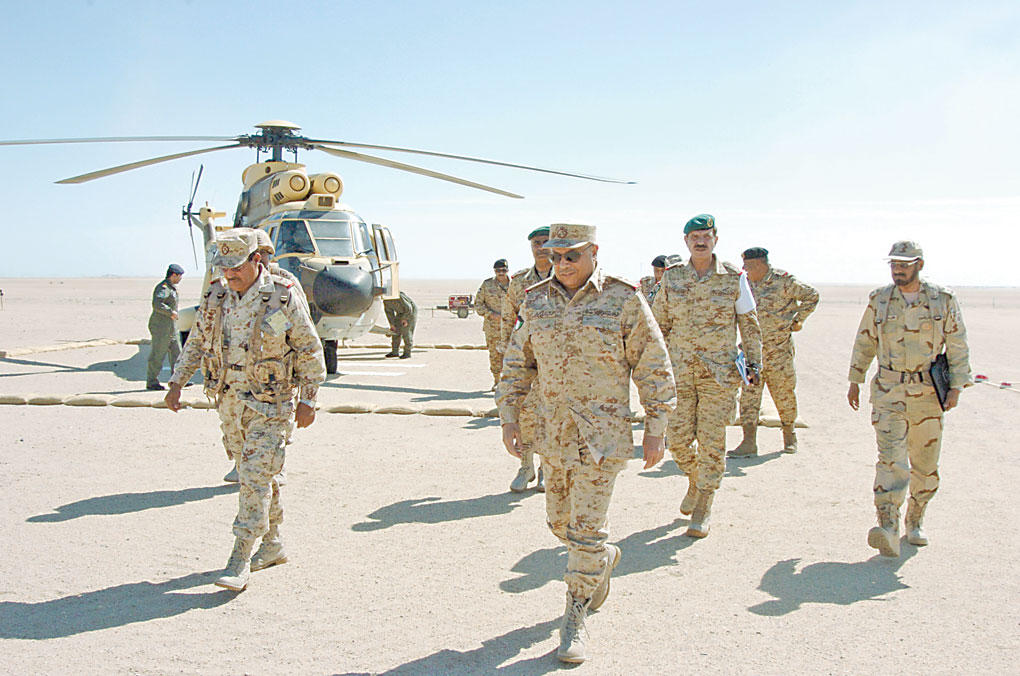 ضمن فعاليات تمرين «درع الجزيرة 9» اجرى رئيس الأركان العامة للجيش الفريق الركن خالد الجراح، يرافقه نائب رئيس الأركان العامة للجيش الفريق الركن عبدالرحمن العثمان، وقائد قوات درع الجزيرة المشتركة اللواء الركن مطلق بن سالم الأزيمع، صباح أمس جولة ميدانية للوقوف على عملية انفتاح القوات واحتلال مواقع دفاعية لردع قوات العدو الوهمي.واستهل الجراح الجولة بزيارة موقع قيادة القوة البرية التعبوي الامامي، حيث كان في استقباله قيادات القوة البرية بالجيش الكويتي، ثم توجه إلى مقر الايجاز، حيث رحب به آمر القوة البرية اللواء الركن خالد الفودري، ثم استمع إلى شرح من ضباط القوة البرية عن دور الوحدات البرية في التمرين والواجبات الموكلة إليها، متزامنة مع تسلسل الاحداث ومجريات التمرين العملي وكيفية حل المعضلات التعبوية، فضلاً عن شرح من ضباط تنسيق القوة الجوية والقوة البحرية بشأن انسجام القوات الثلاث وسرعة الاستجابة عند طلب القائد حسب تطورات الموقف العملياتي.