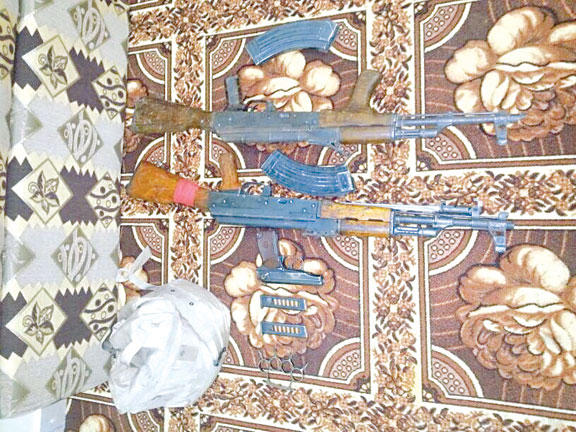 • رجال الإطفاء عثروا على بندقيتين ومسدس وعدد كبير من الذخيرة