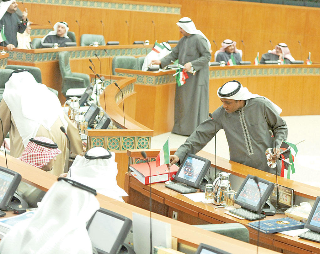 طلبت النائبة صفاء الهاشم تزيين قاعة عبدالله السالم بالعلم الوطني بمناسبة الذكرى السابعة لتولي ولي العهد سمو الشيخ نواف الأحمد، واستجاب المجلس لطلبها لتمتلئ مقاعد النواب بالاعلام الوطنية.