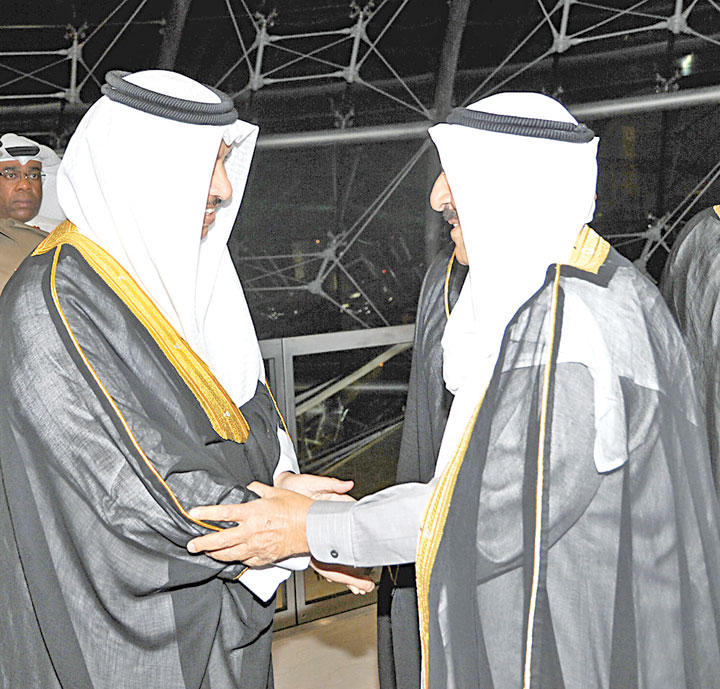 وكان في استقبال سموه على أرض المطار سمو ولي العهد الشيخ نواف الأحمد، وسمو رئيس الحرس الوطني الشيخ سالم العلي، ورئيس مجلس الأمة السابق جاسم الخرافي، وكبار الشيوخ، ورئيس مجلس الوزراء سمو الشيخ جابر المبارك، ورئيس مجلس الأمة بالإنابة مبارك الخرينج، ونائب وزير شؤون الديوان الأميري الشيخ علي الجراح، والوزراء والمحافظون وكبار القادة بالجيش والشرطة والحرس الوطني، وكبار رجالات الدولة وكبار المسؤولين بالدولة، وجمع غفير من المواطنين.